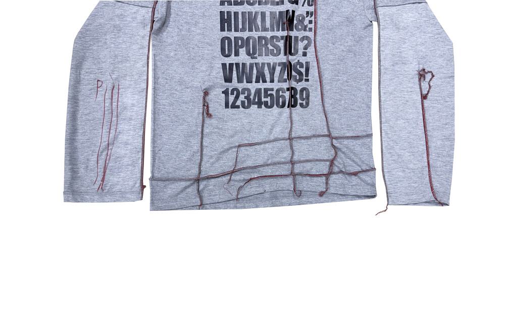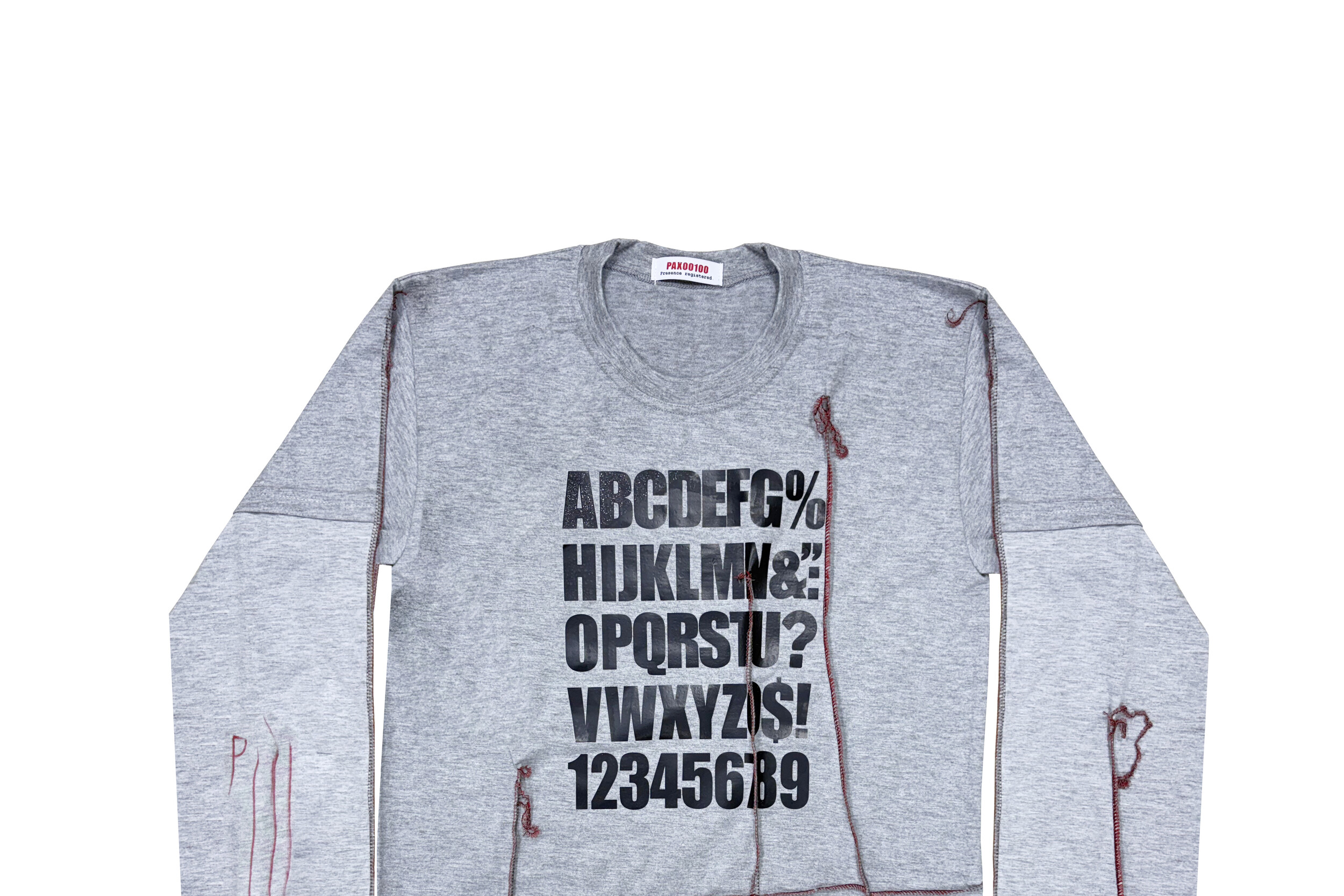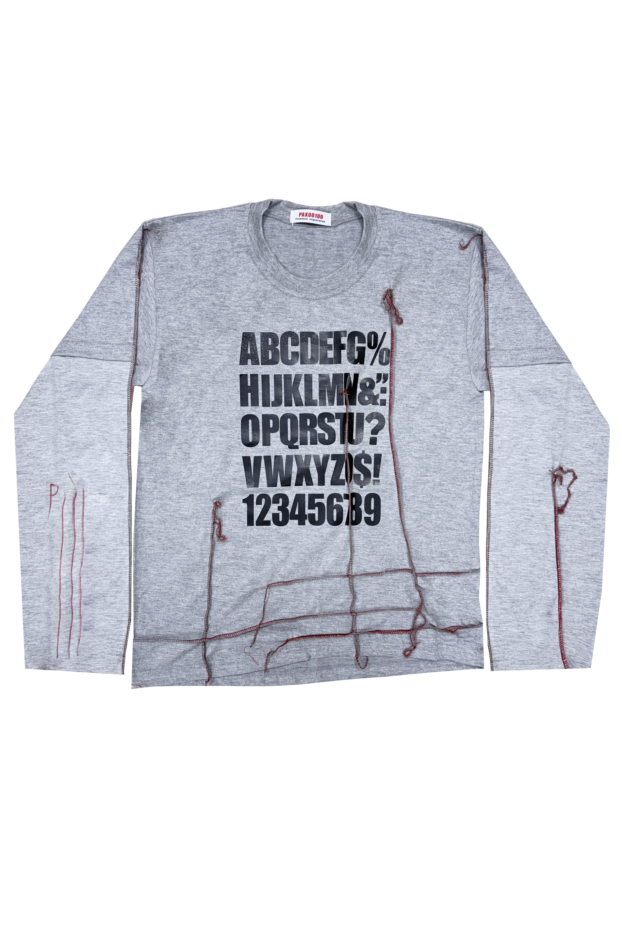 Grey Long-Sleeve T-Shirt with Spelling Print