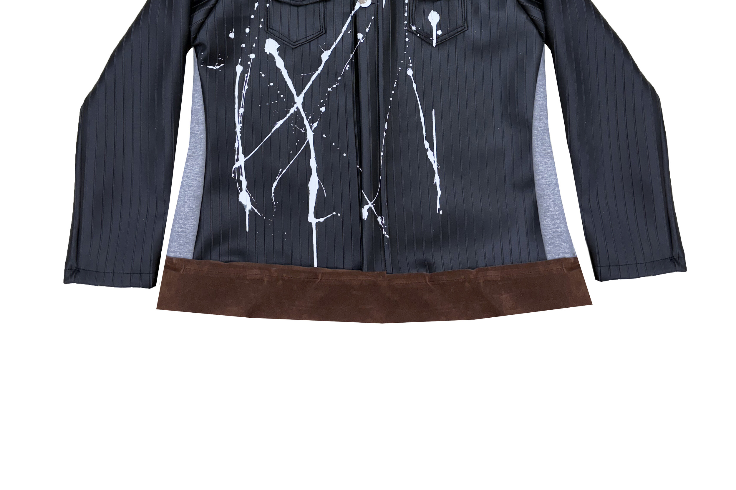 • Brown suede leather detail at hem