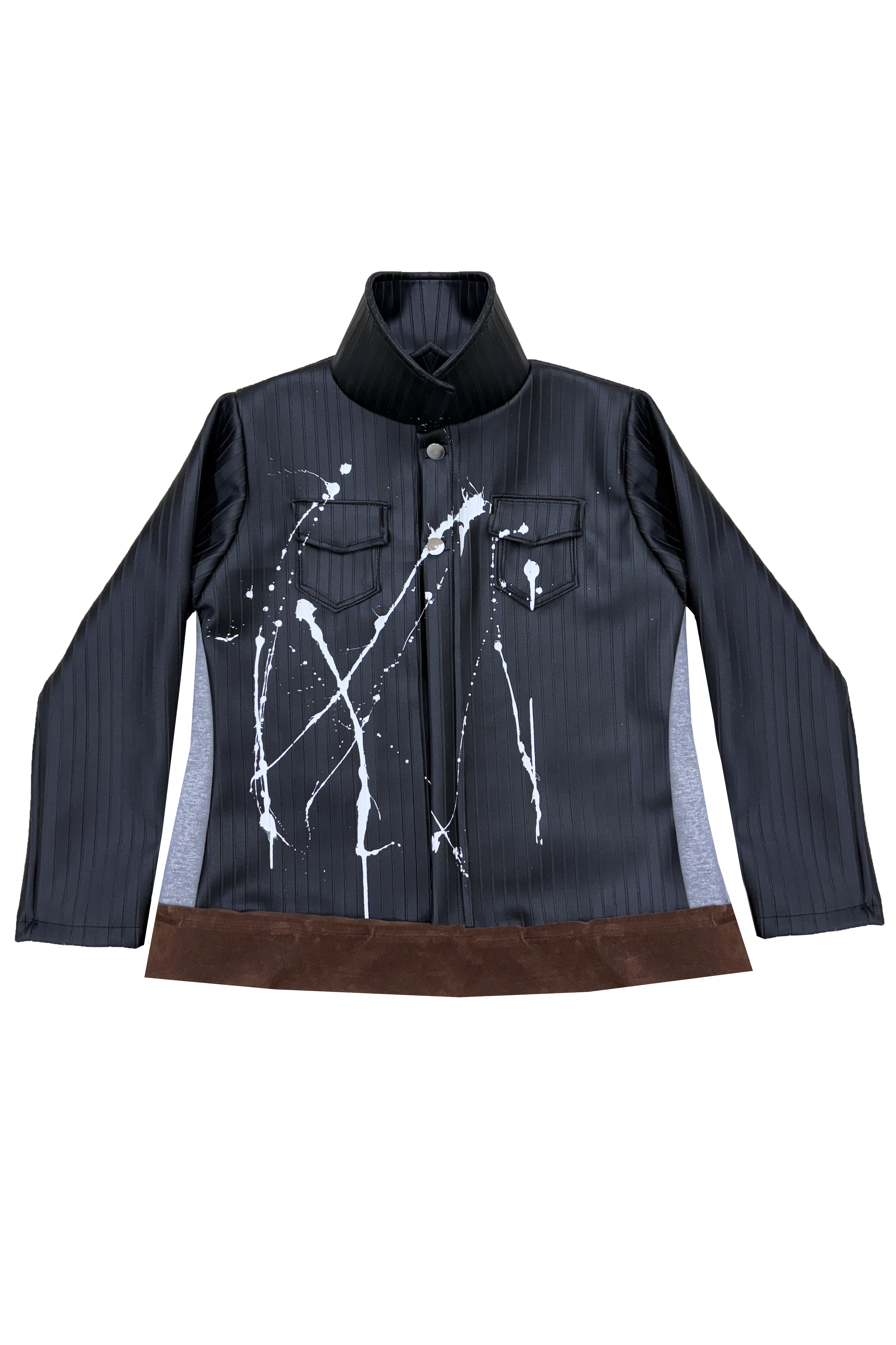 Layered-Paint Black Leather Jacket