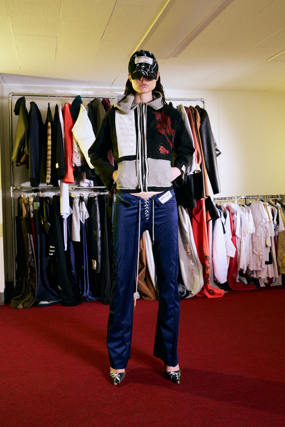 • Grey cotton drawstring hood adjustment