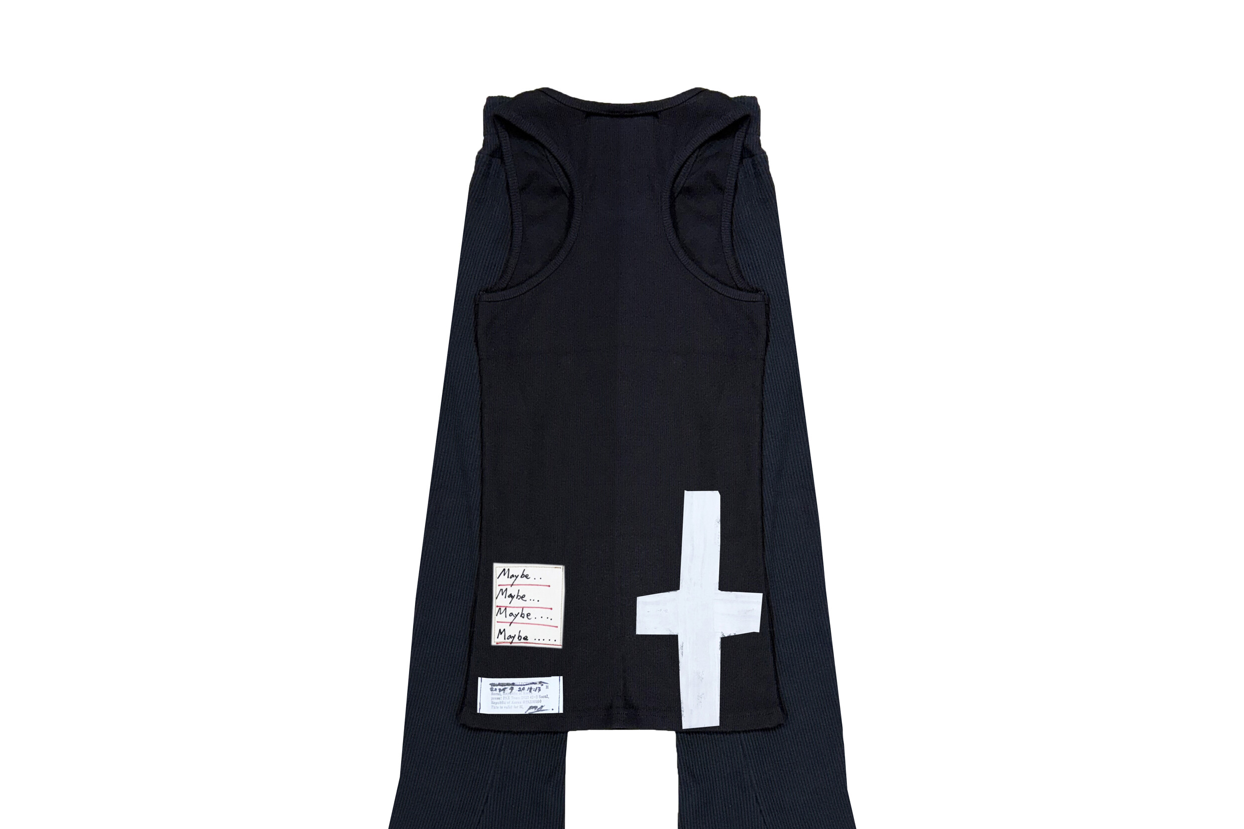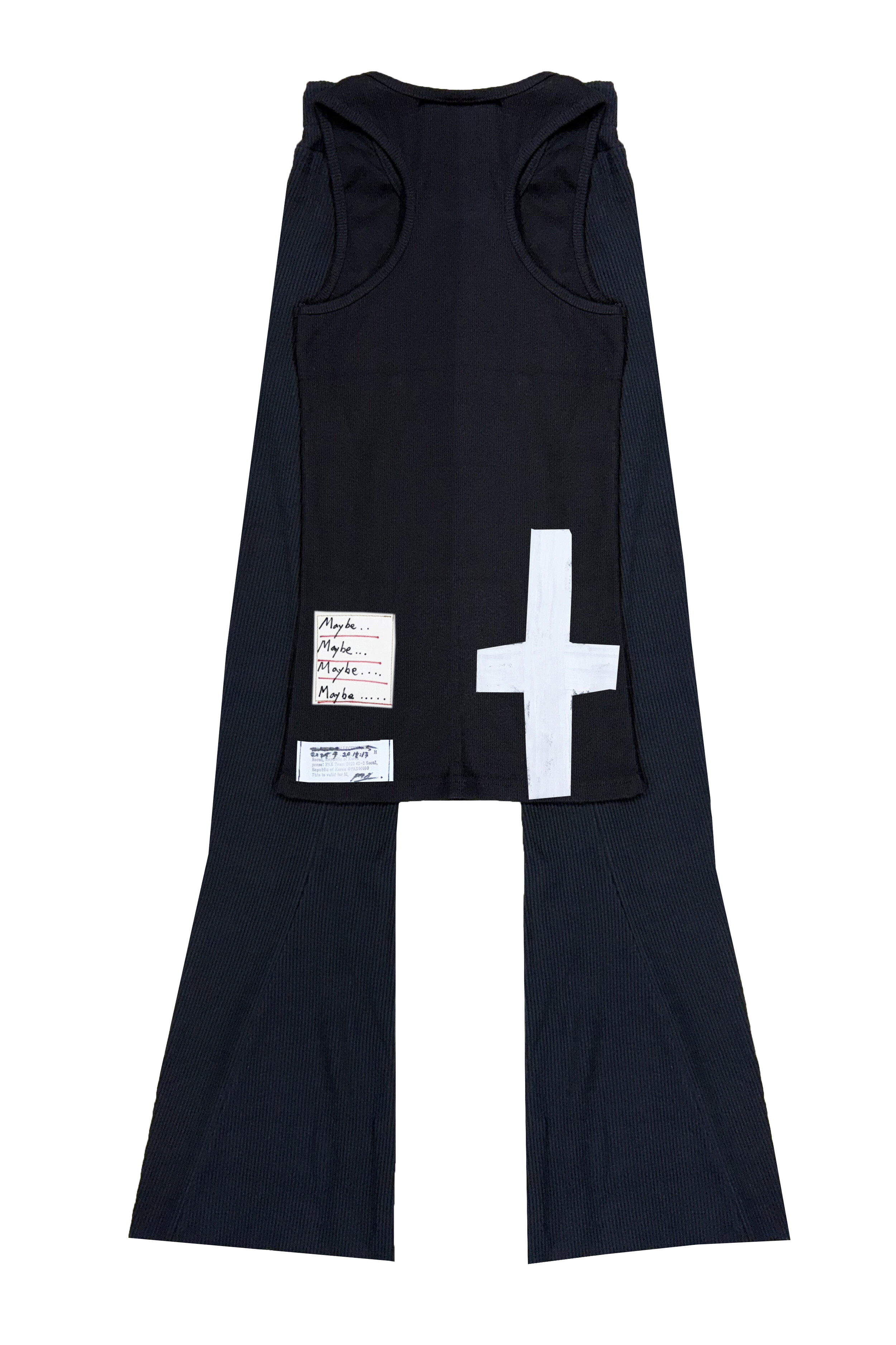 Black Slim-Fit Bootcut Pants with Back Tank-Top Layering