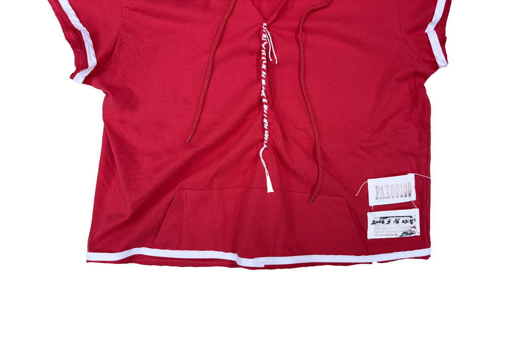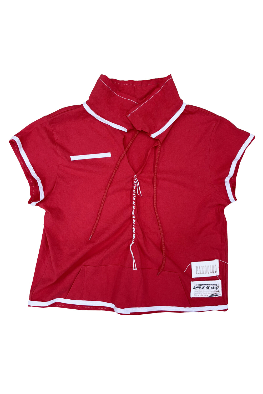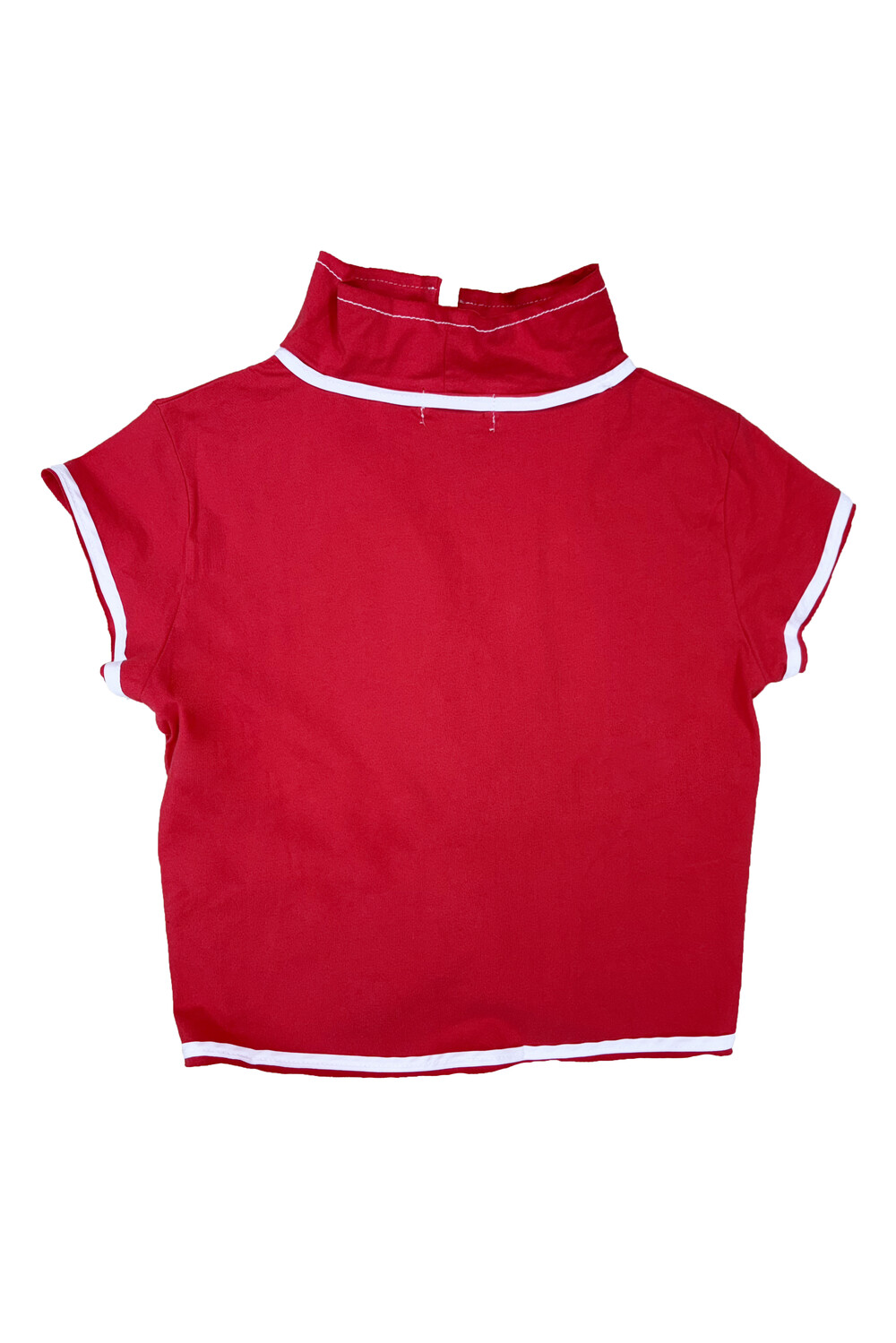 - White thread hand-sewn detail at the center