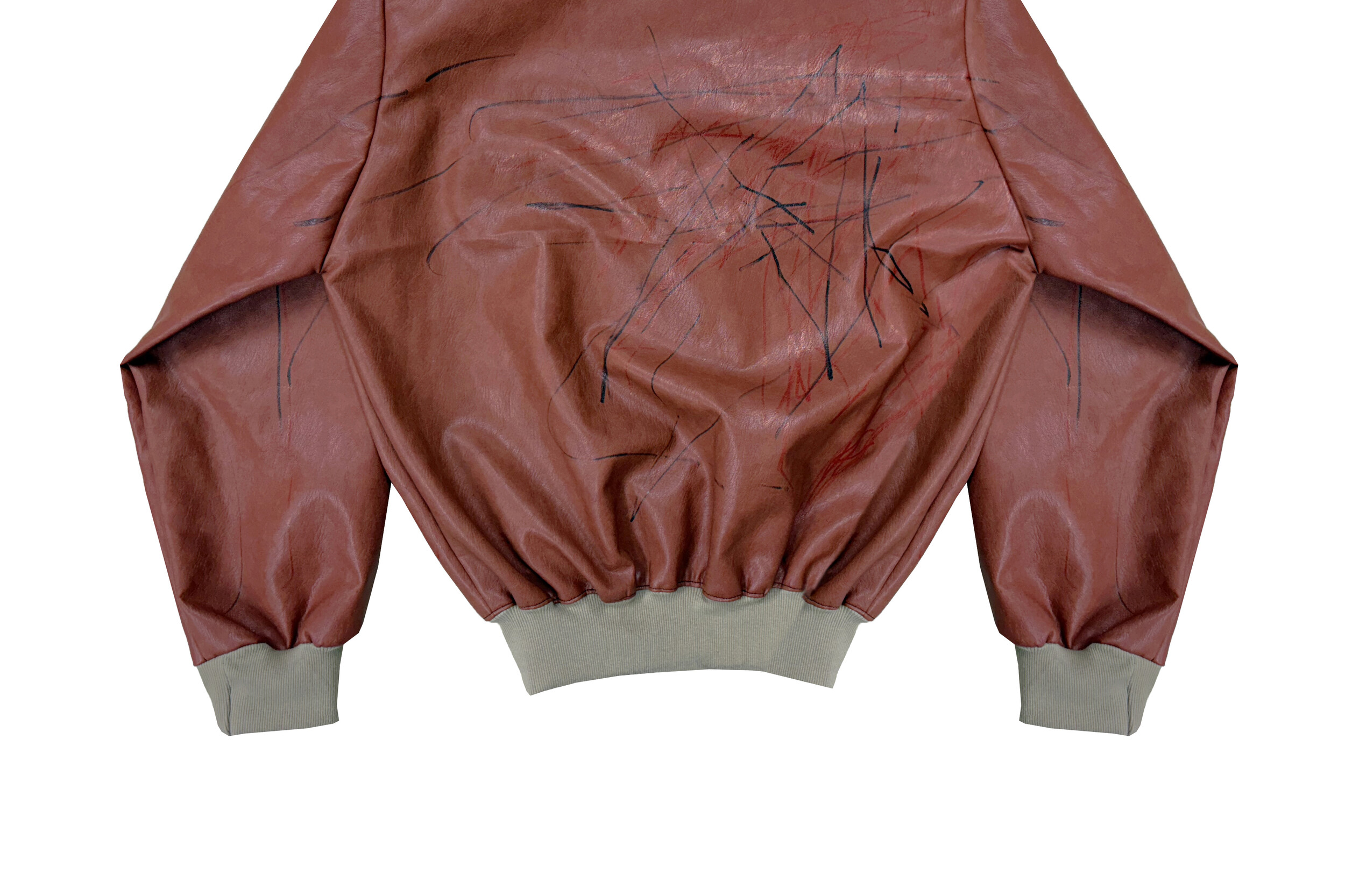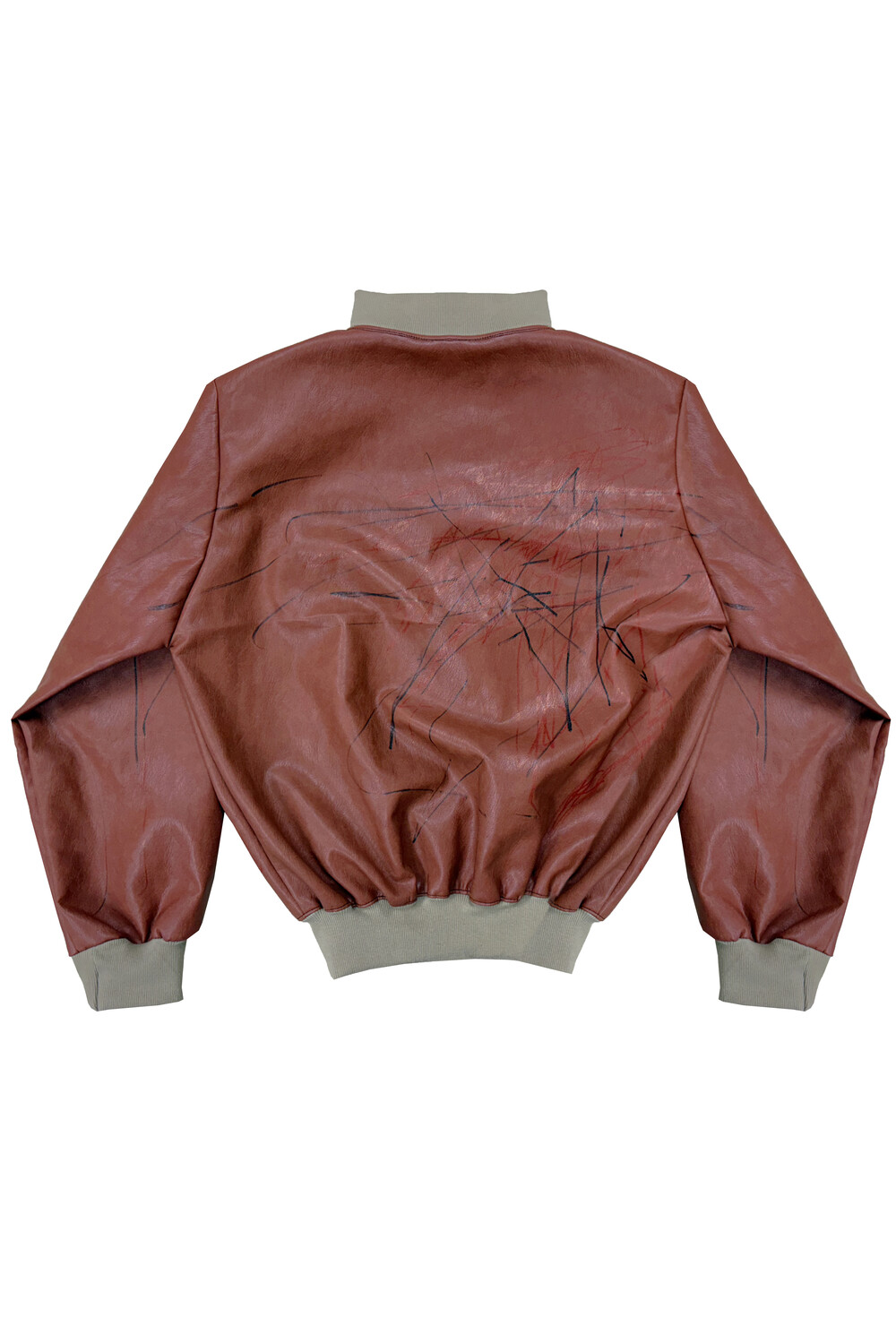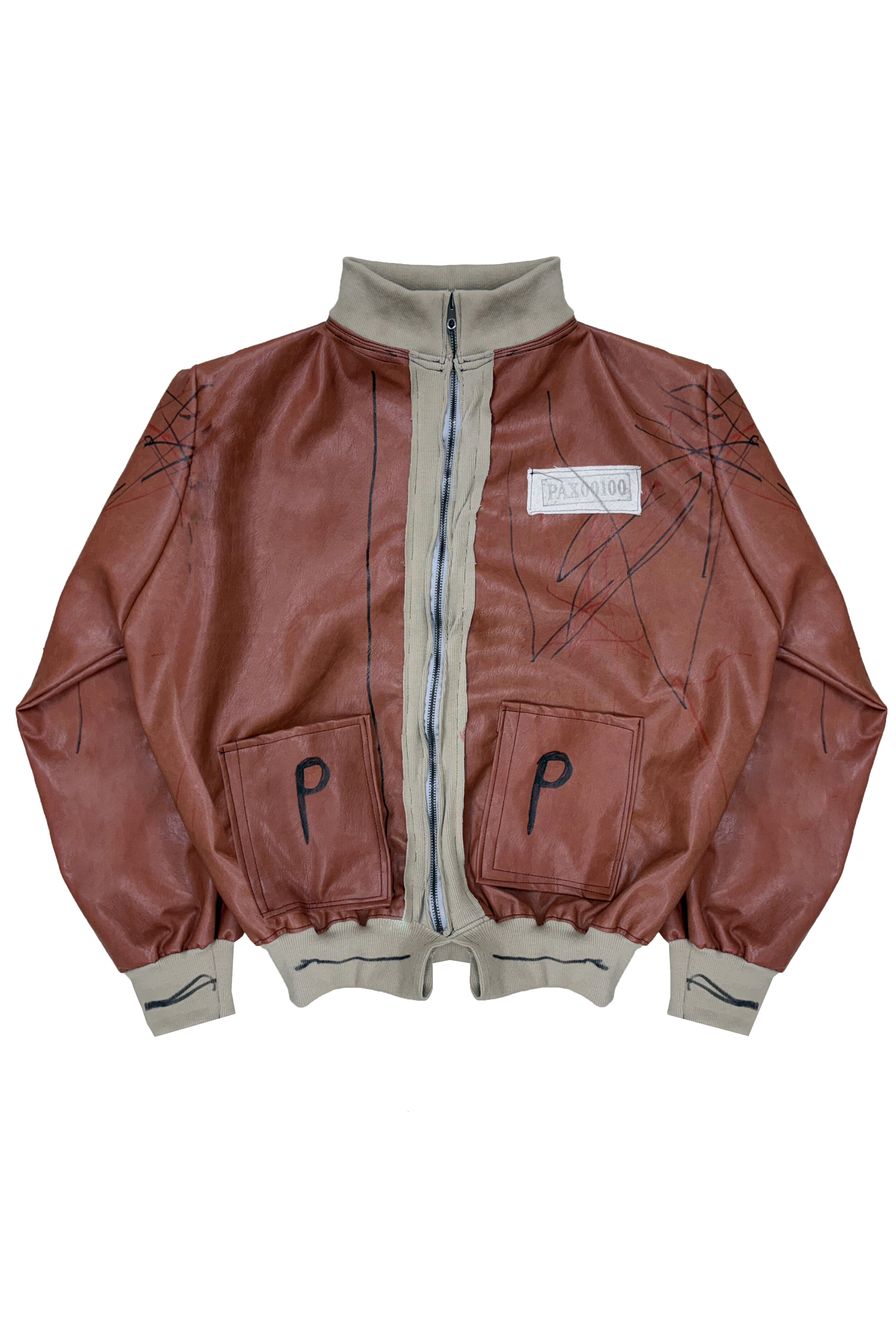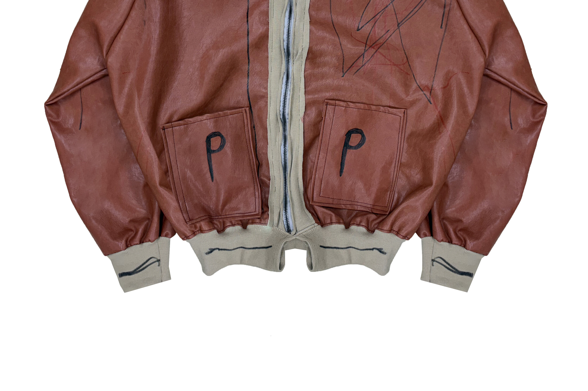 Brown Leather Zip-Up Jacket with P-Pocket Doodle