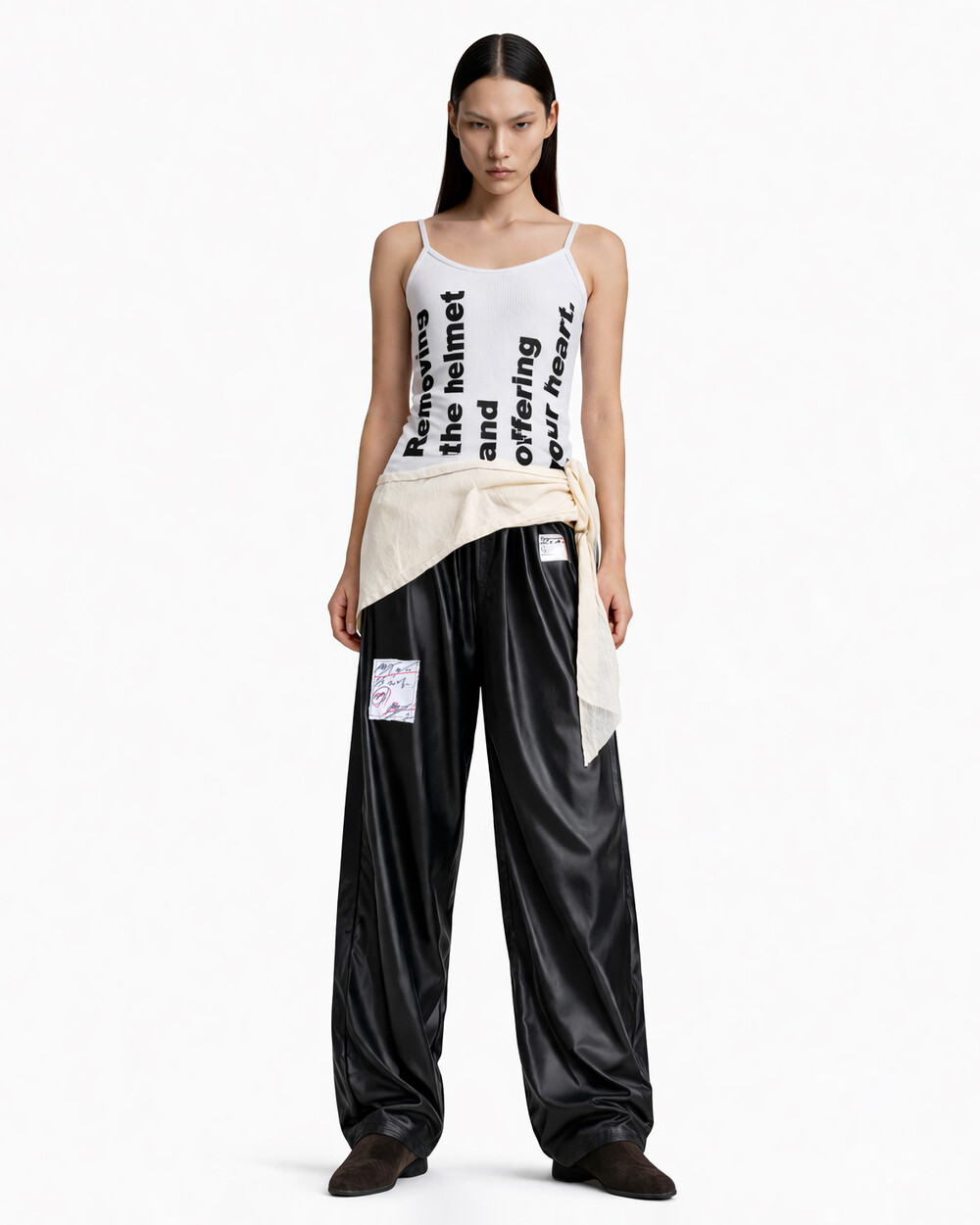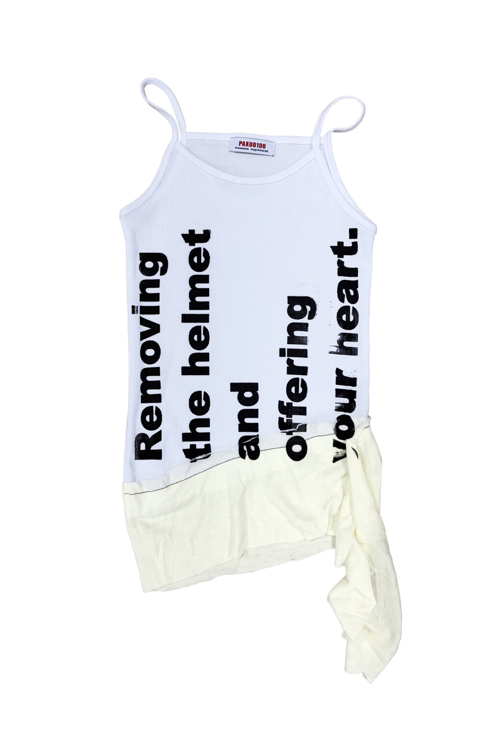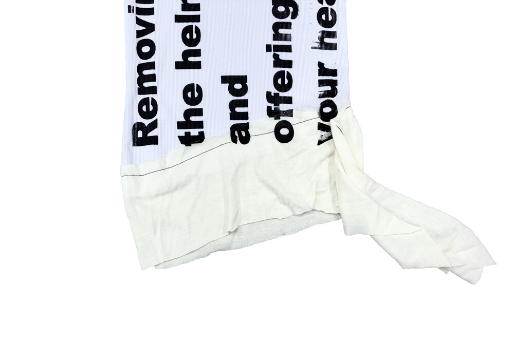 - Black lettering design reading “Removing the helmet and offering your heart”