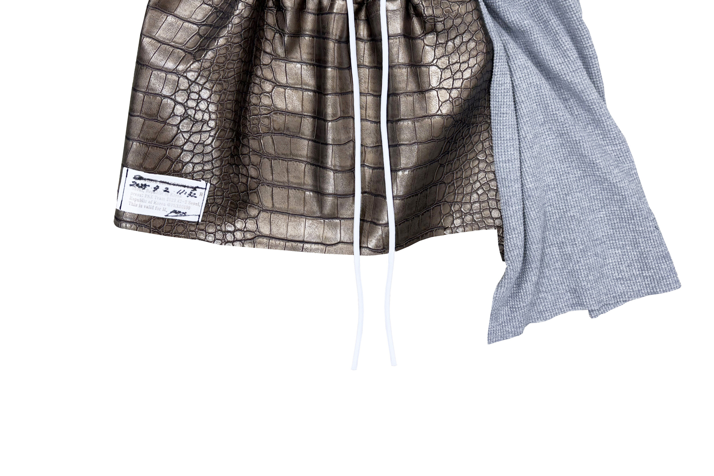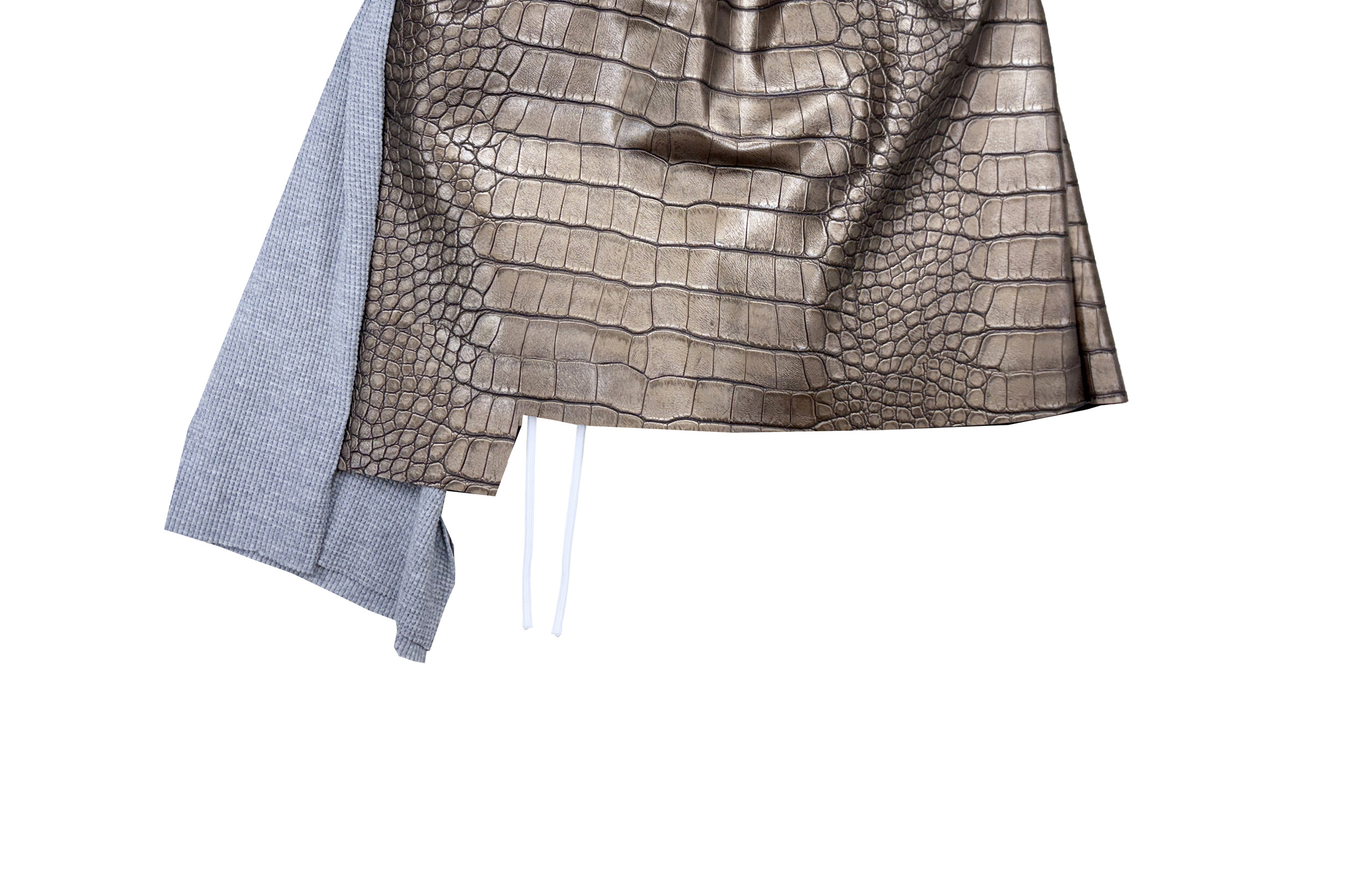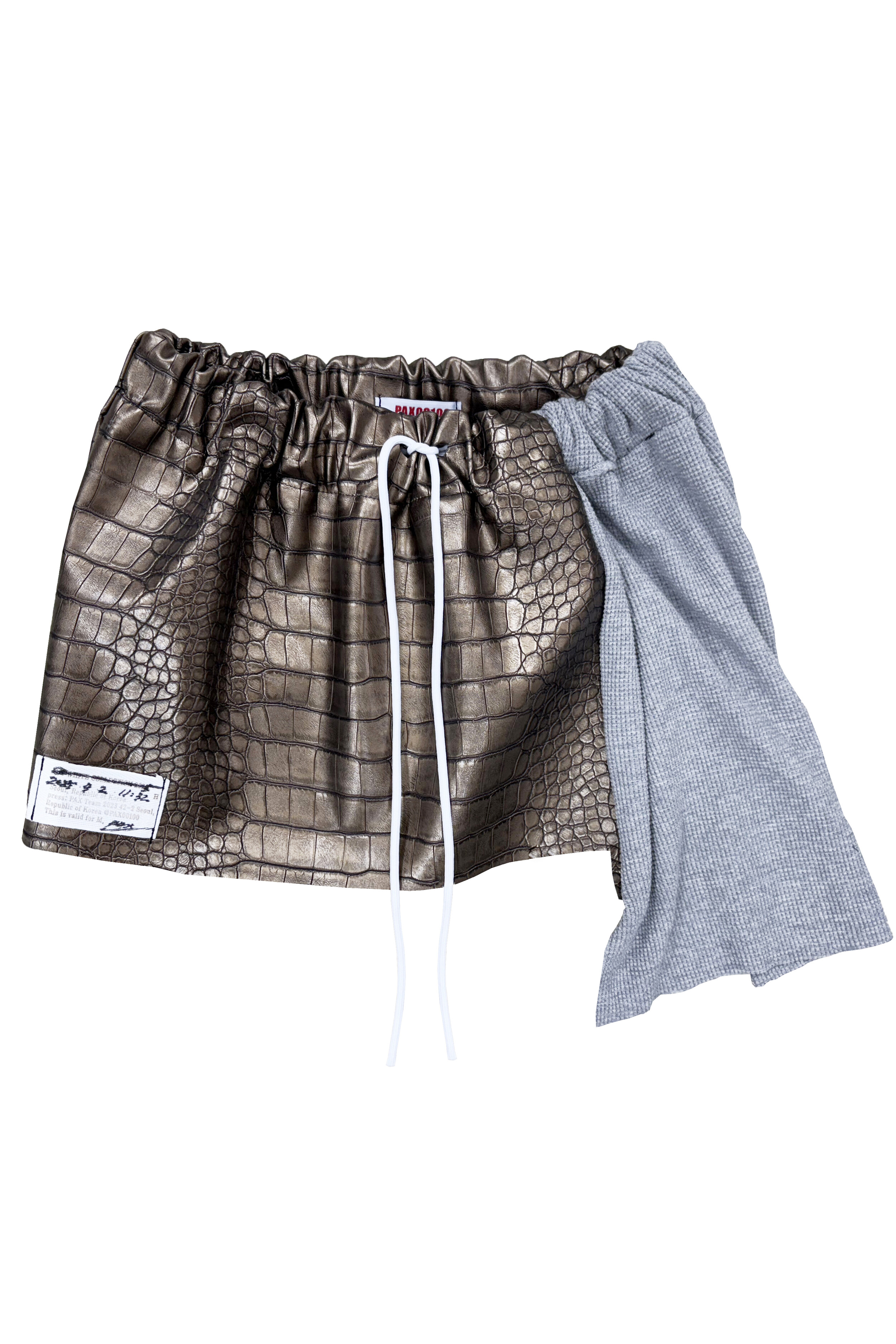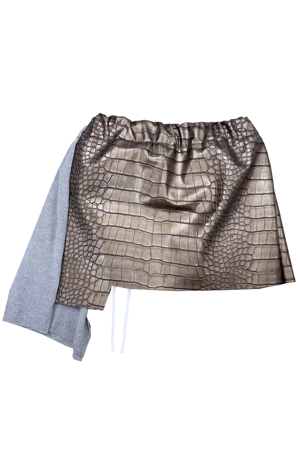 Gold Snakeskin-Print Layered Cotton Mini Skirt