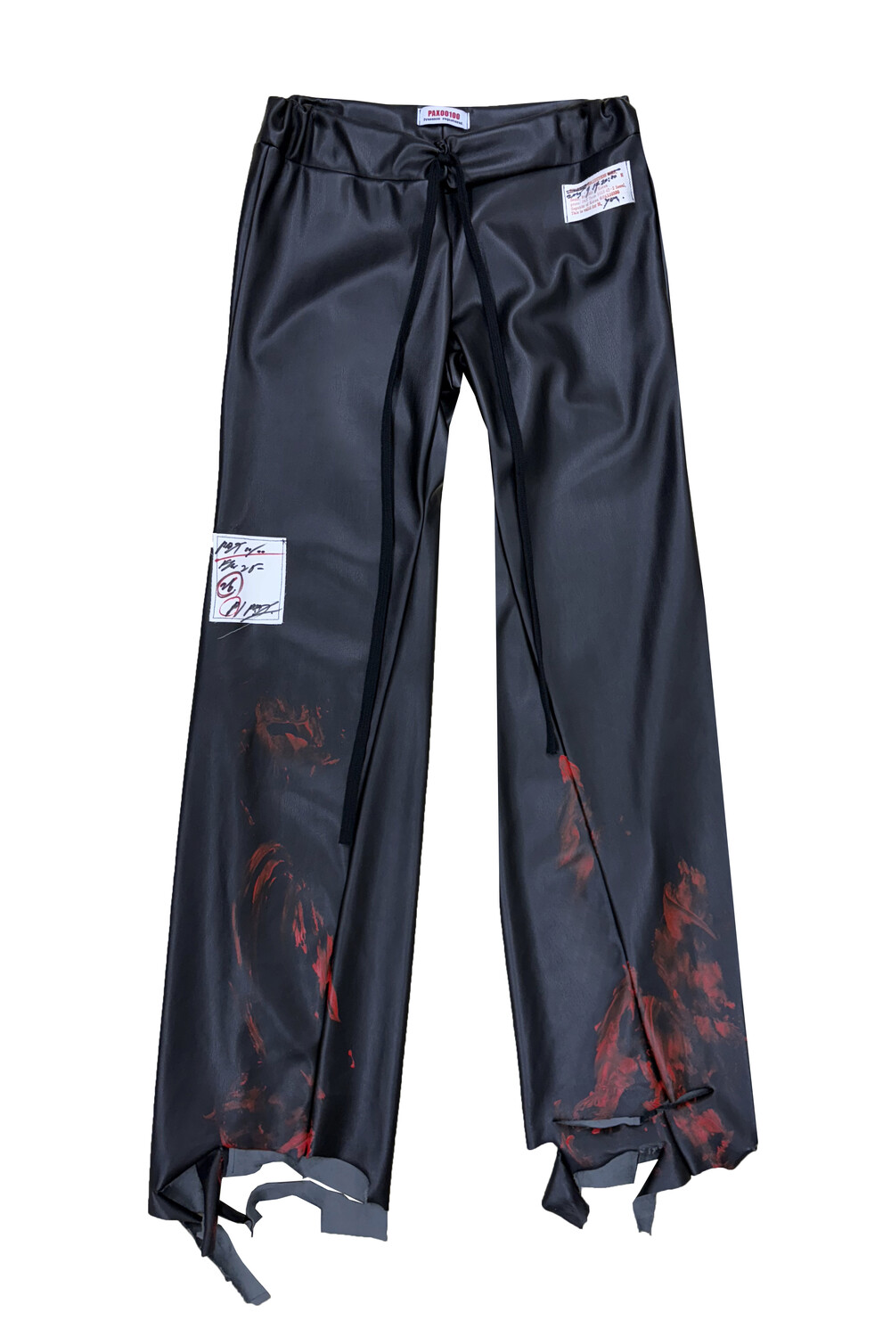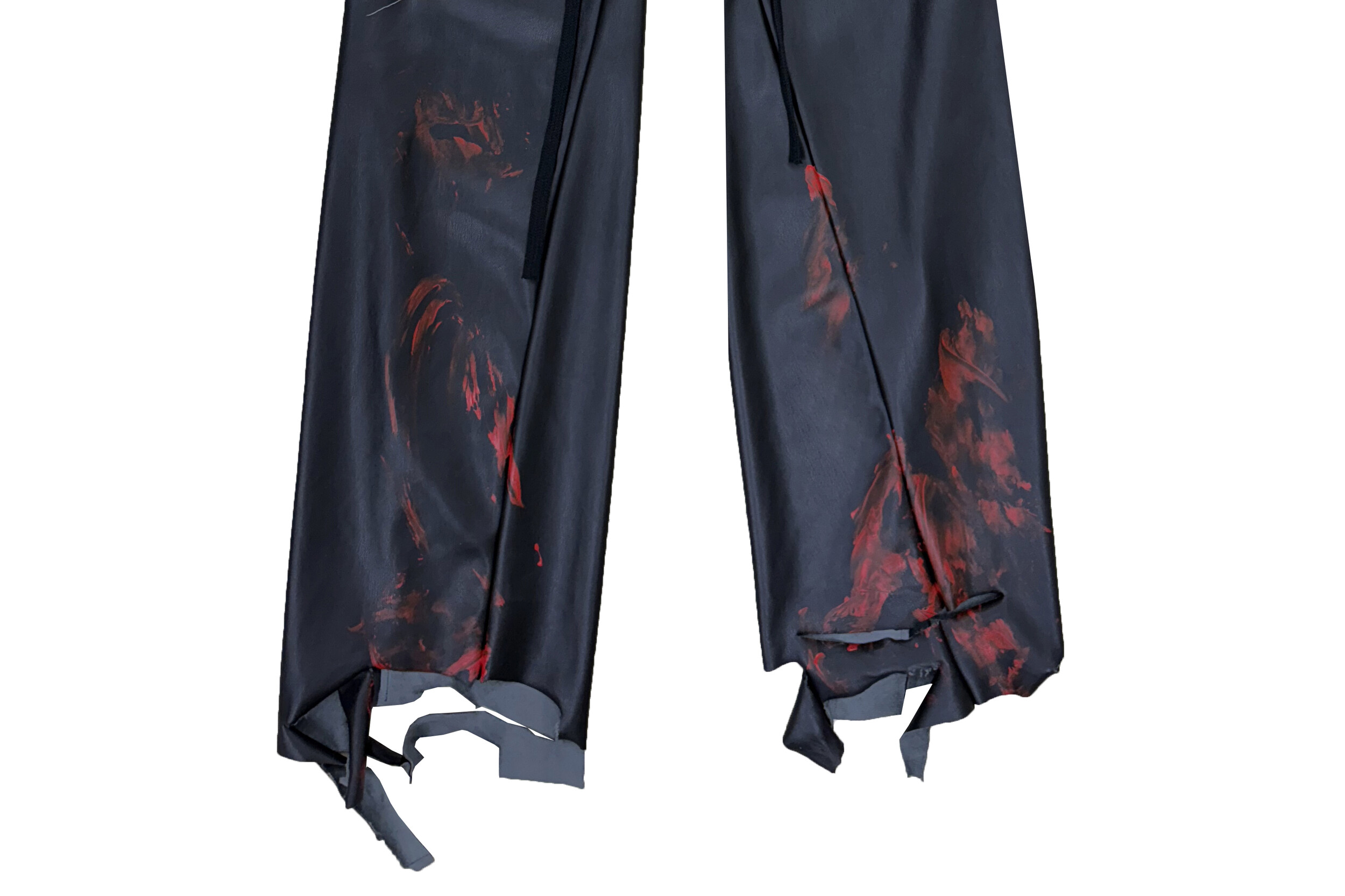 Black Leather Red-Painted Distressed Bootcut
