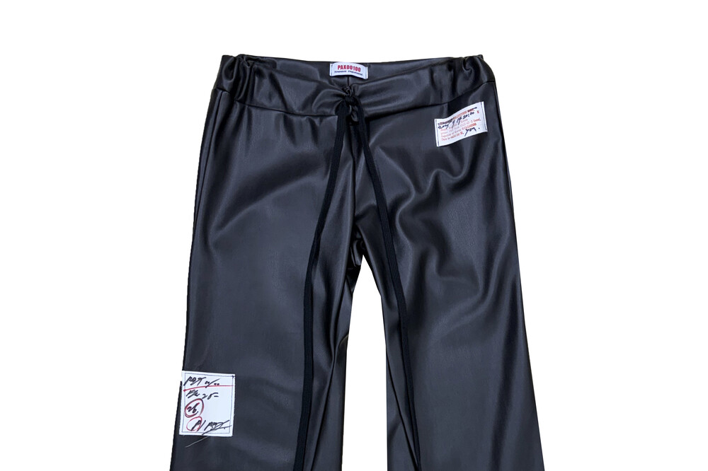 • Long black cotton string detail