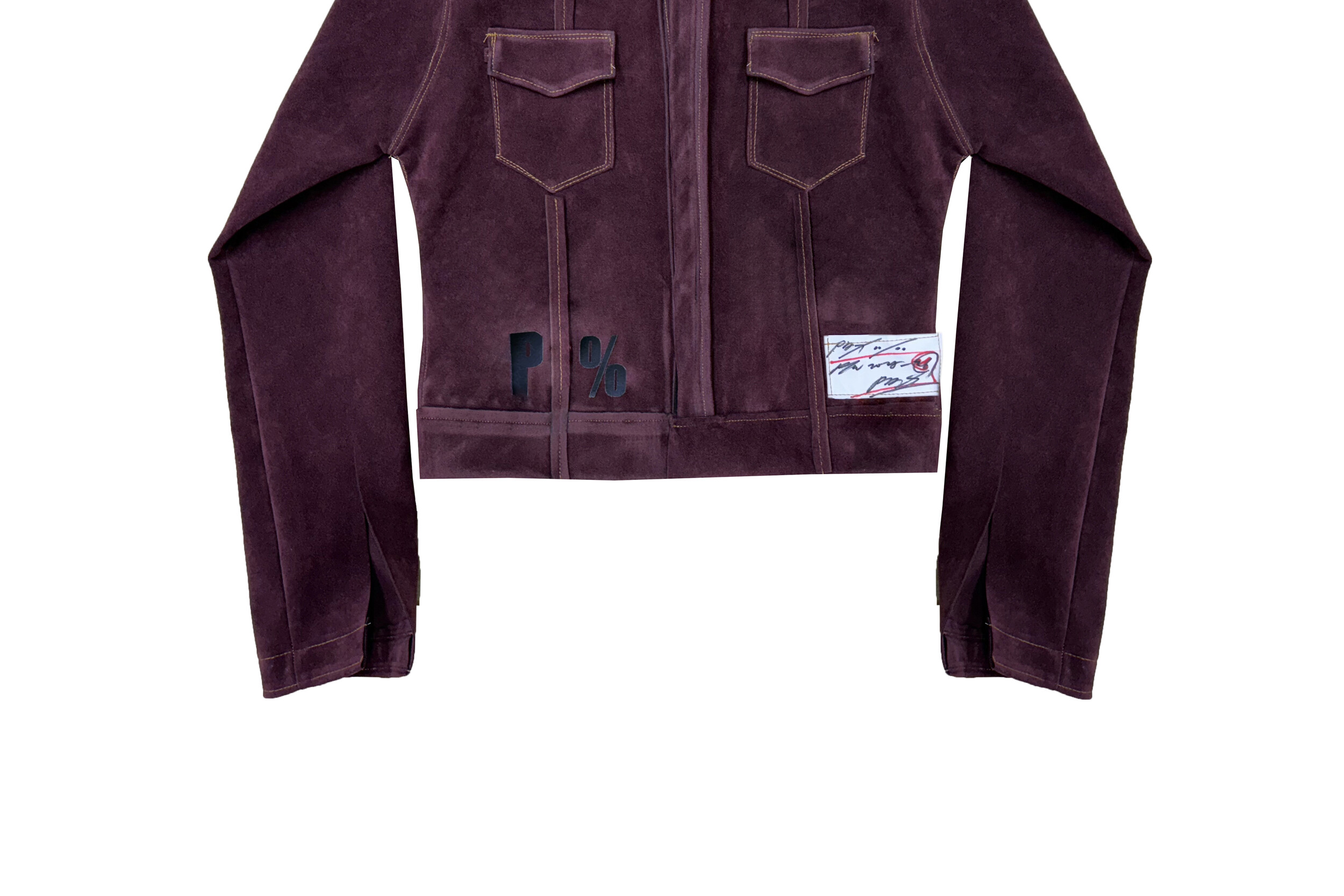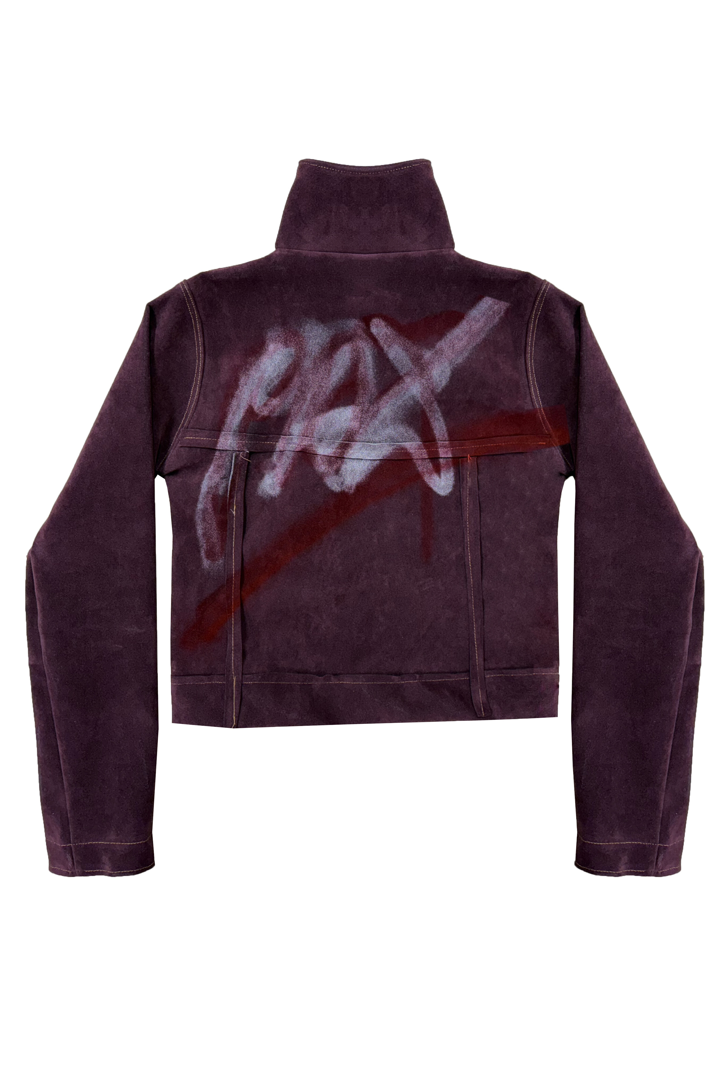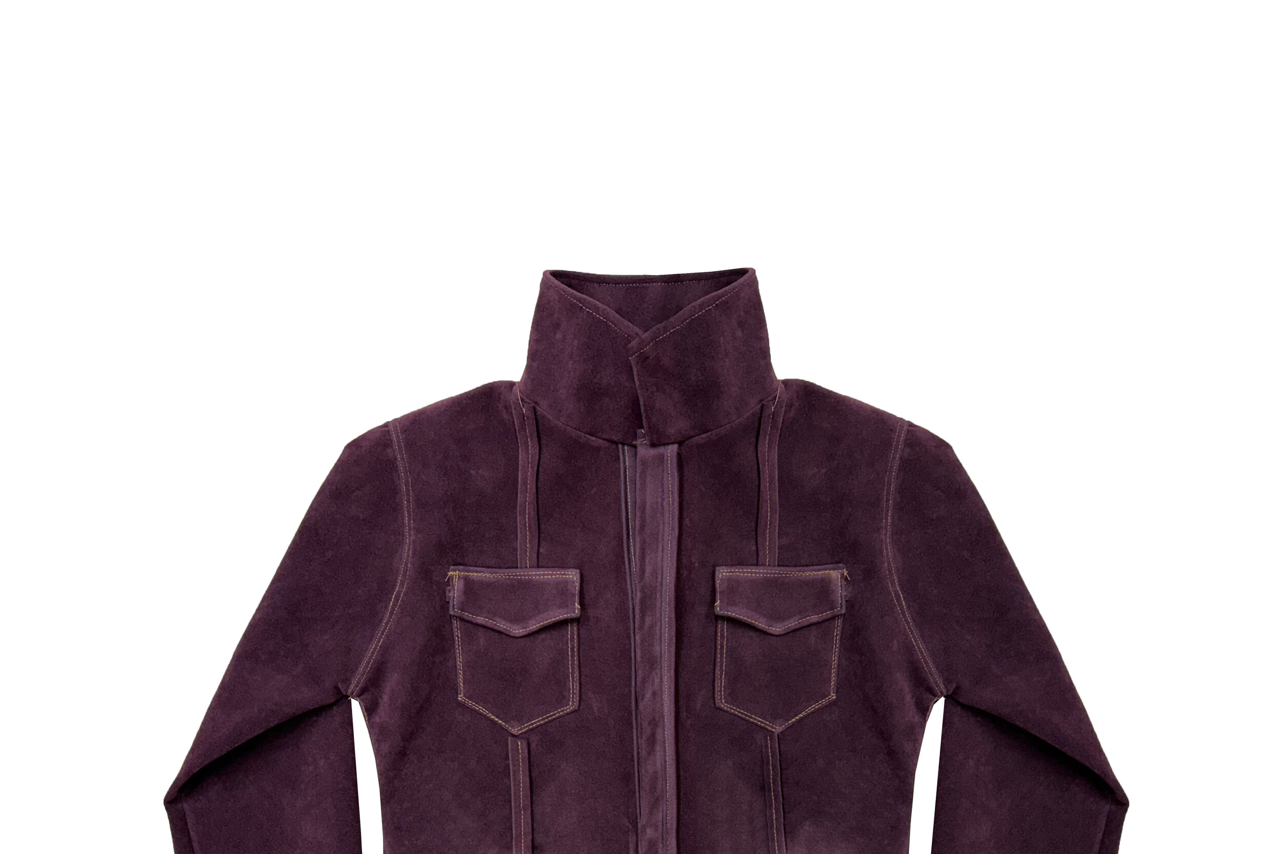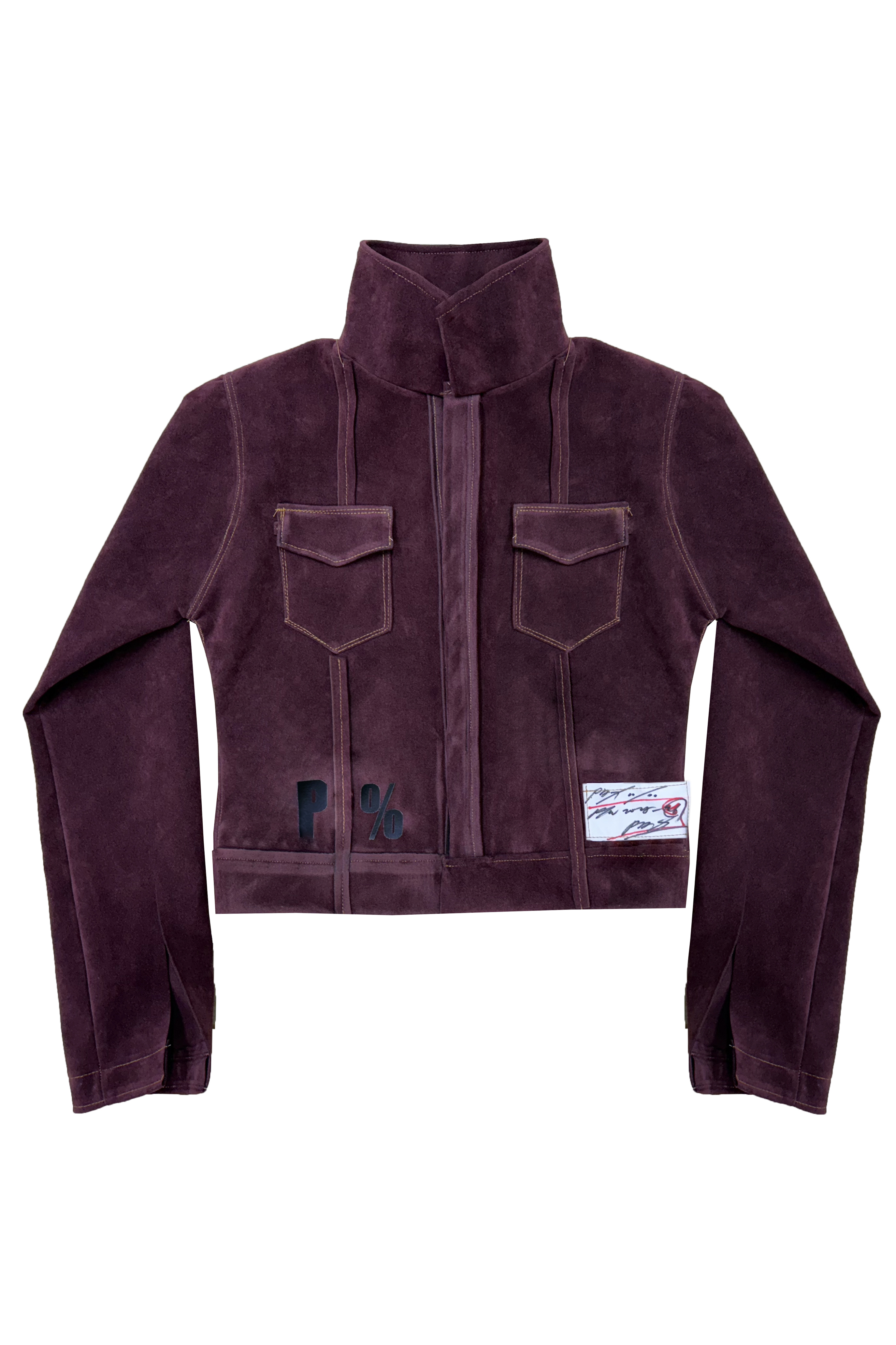 Burgundy Slim-Fit Buttonless Suede Leather Jacket