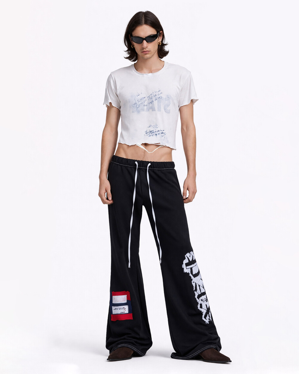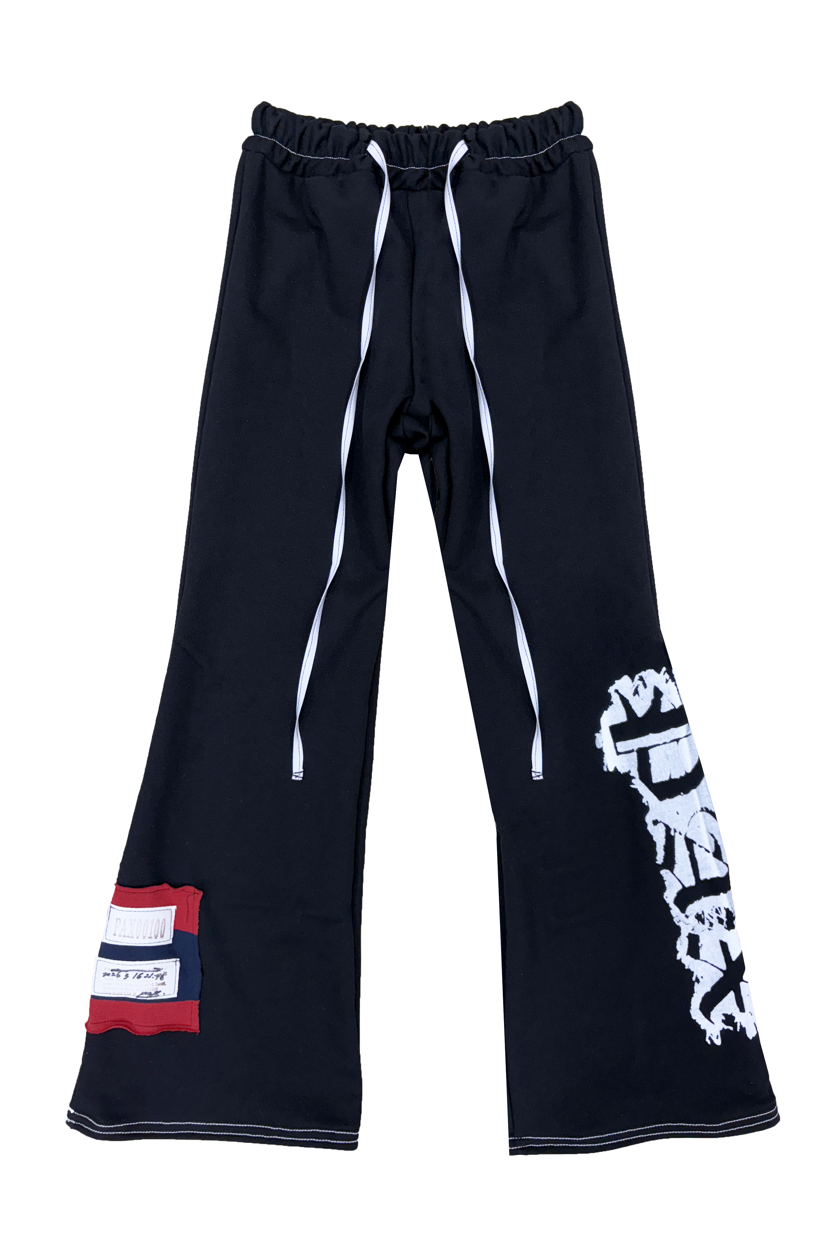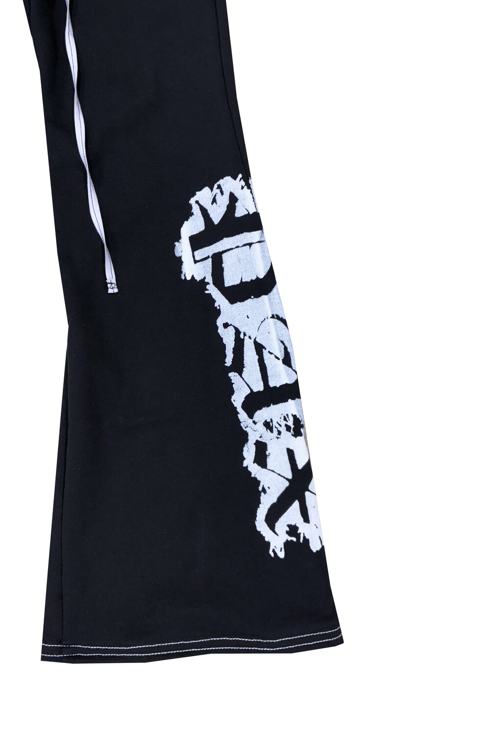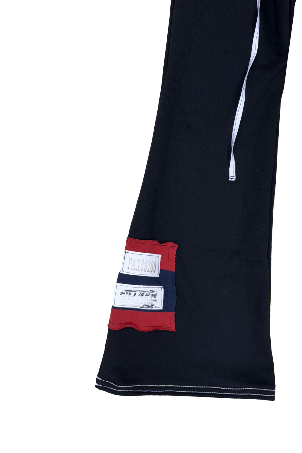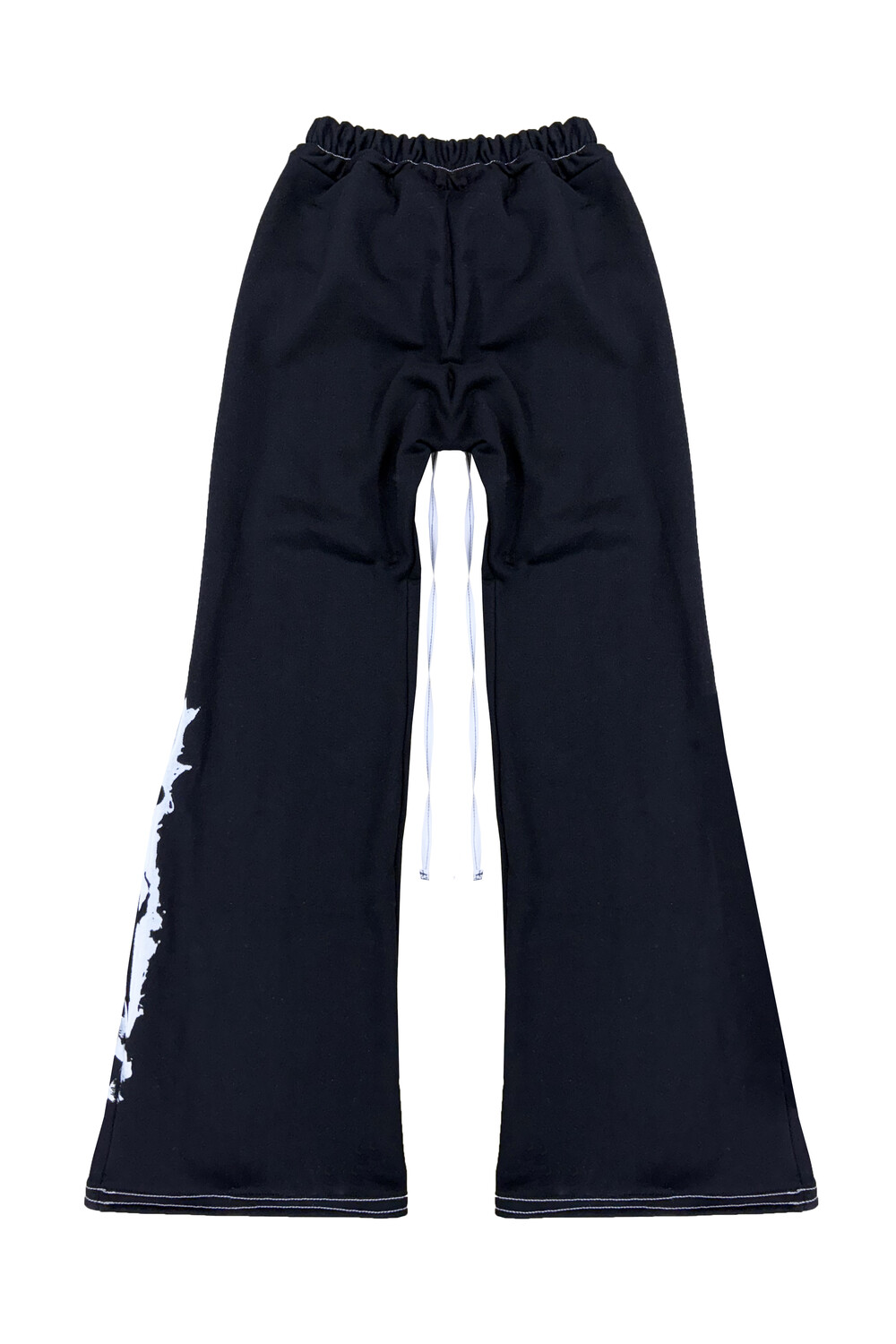 - White nylon waist drawstring with black stitching detail