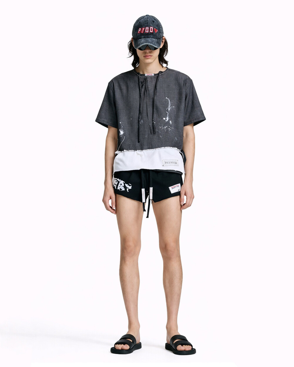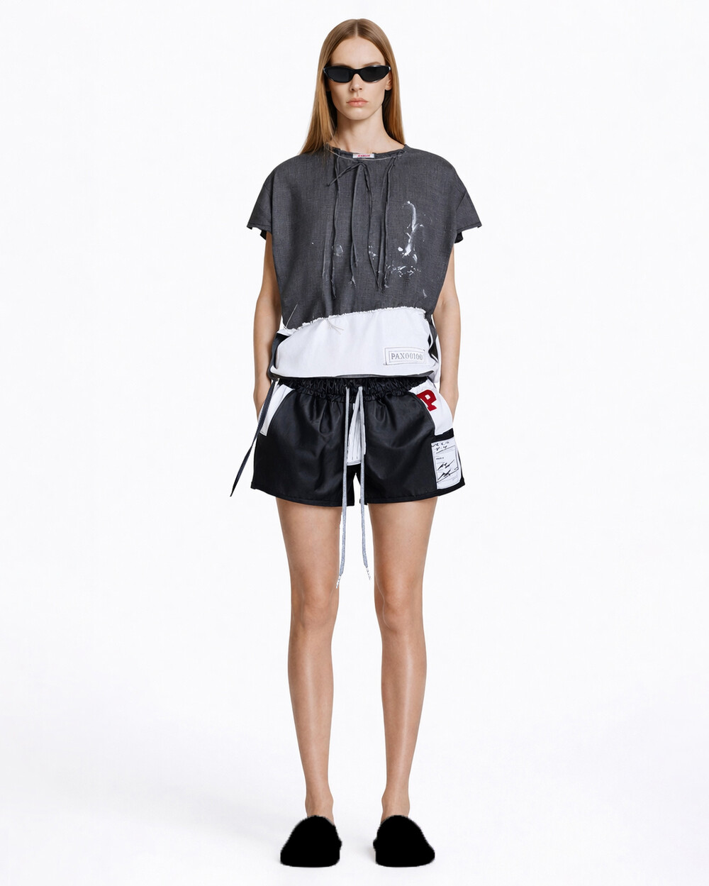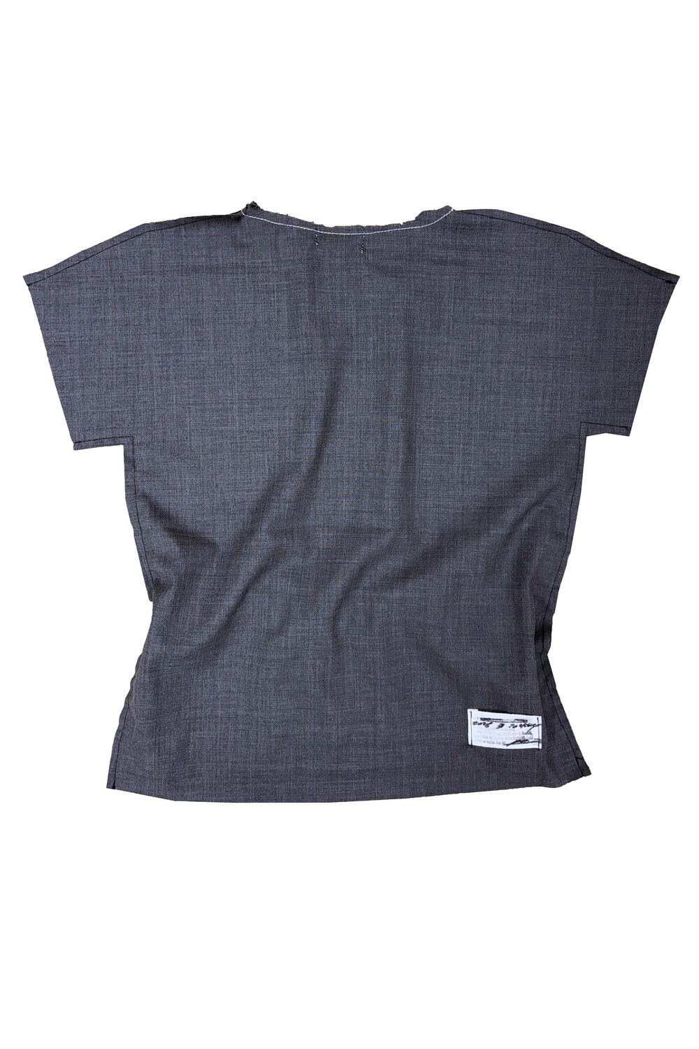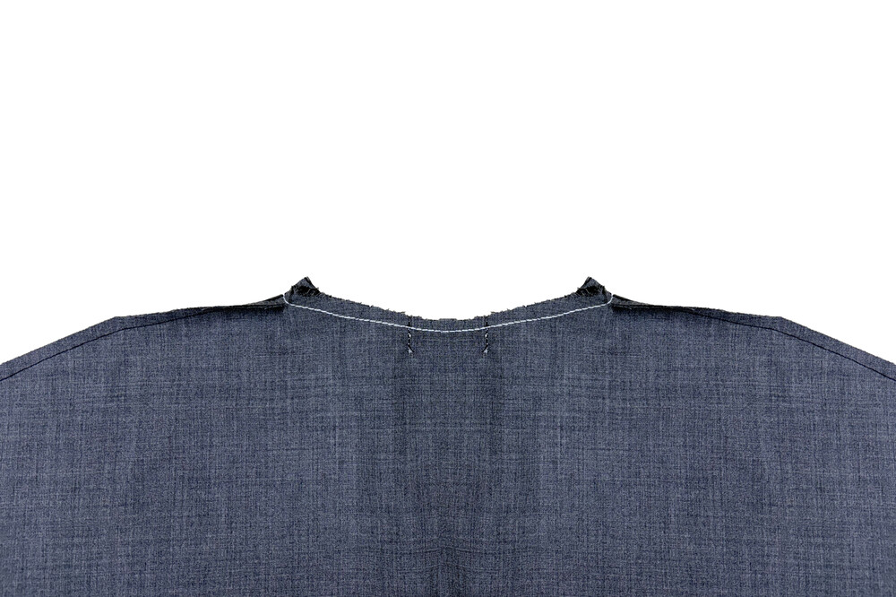 - White stitched raw neckline finish