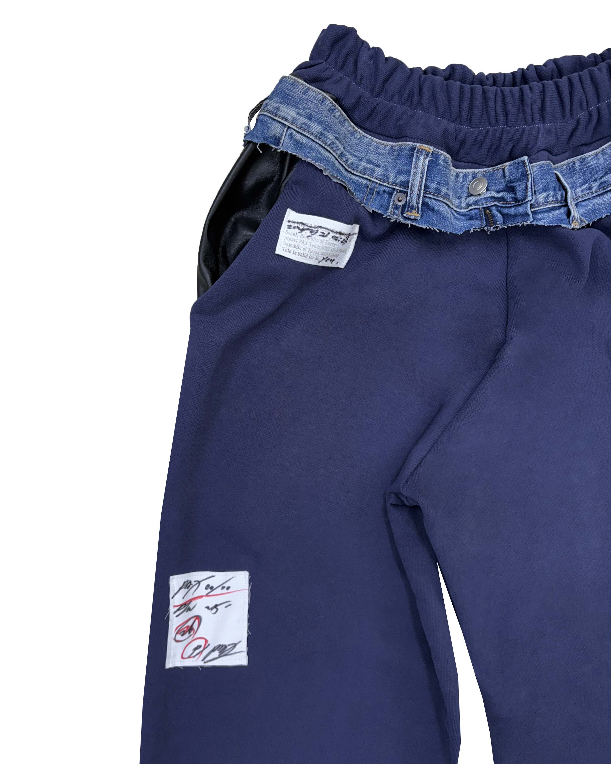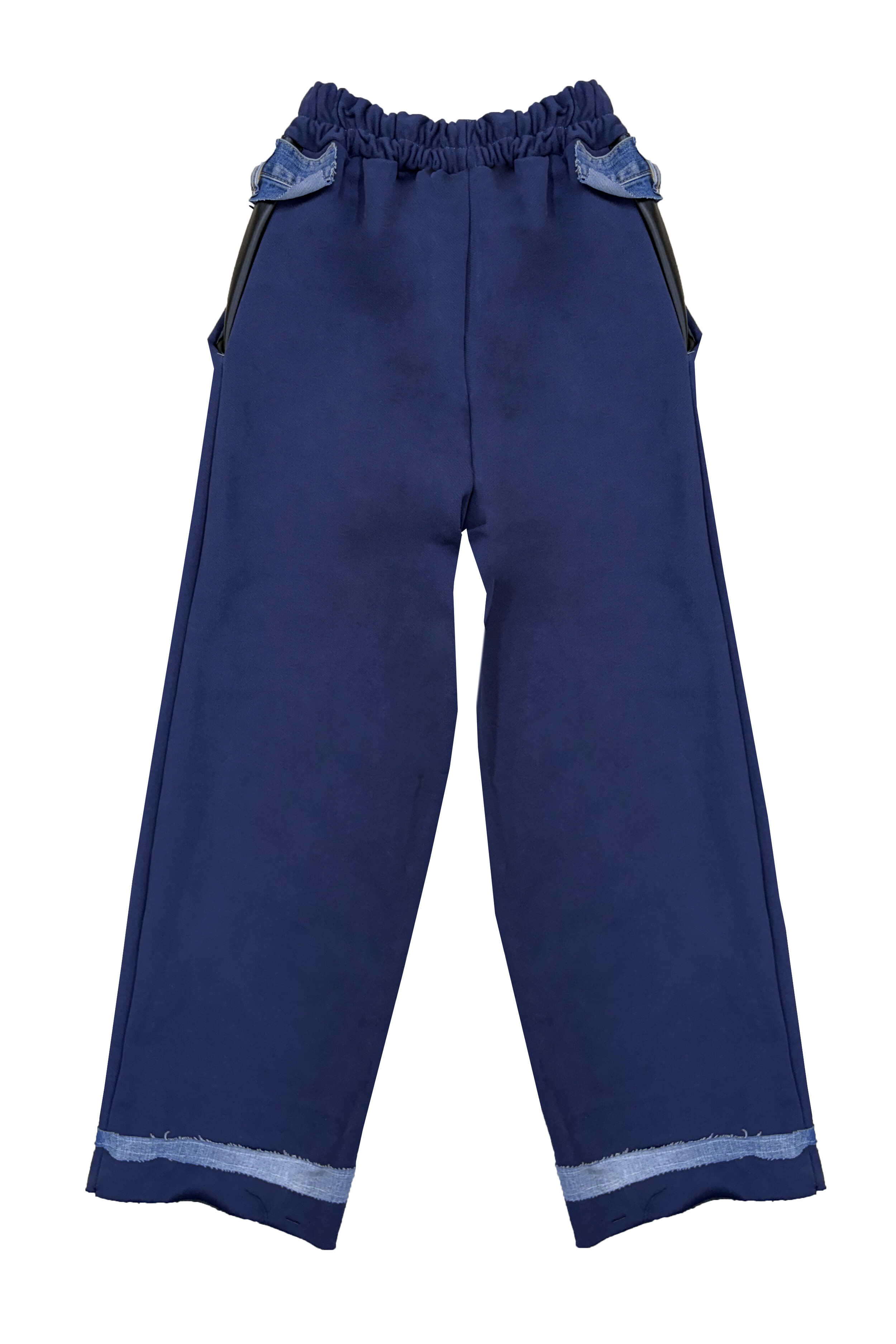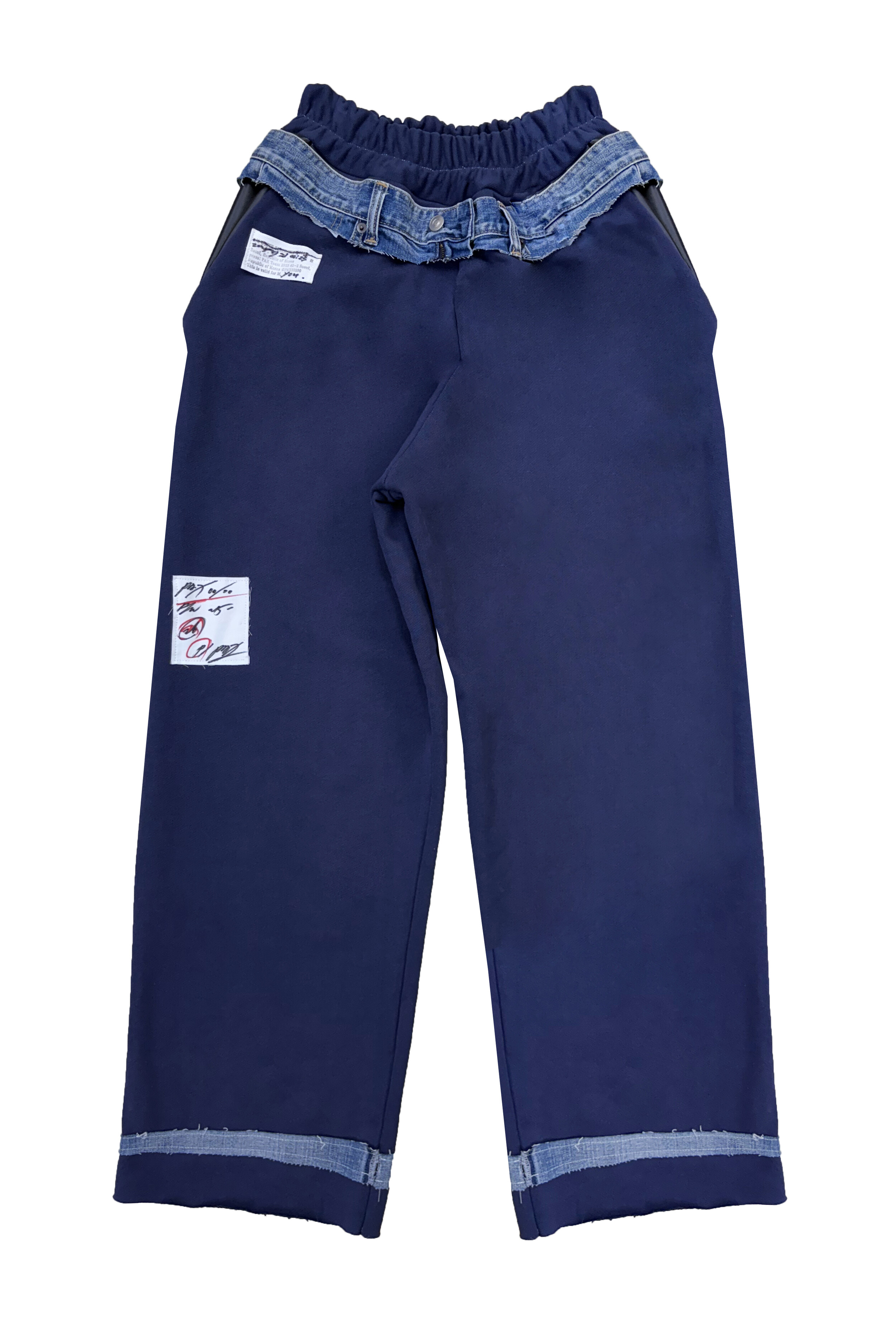 Denim-Belt Layered Navy Straight Pants