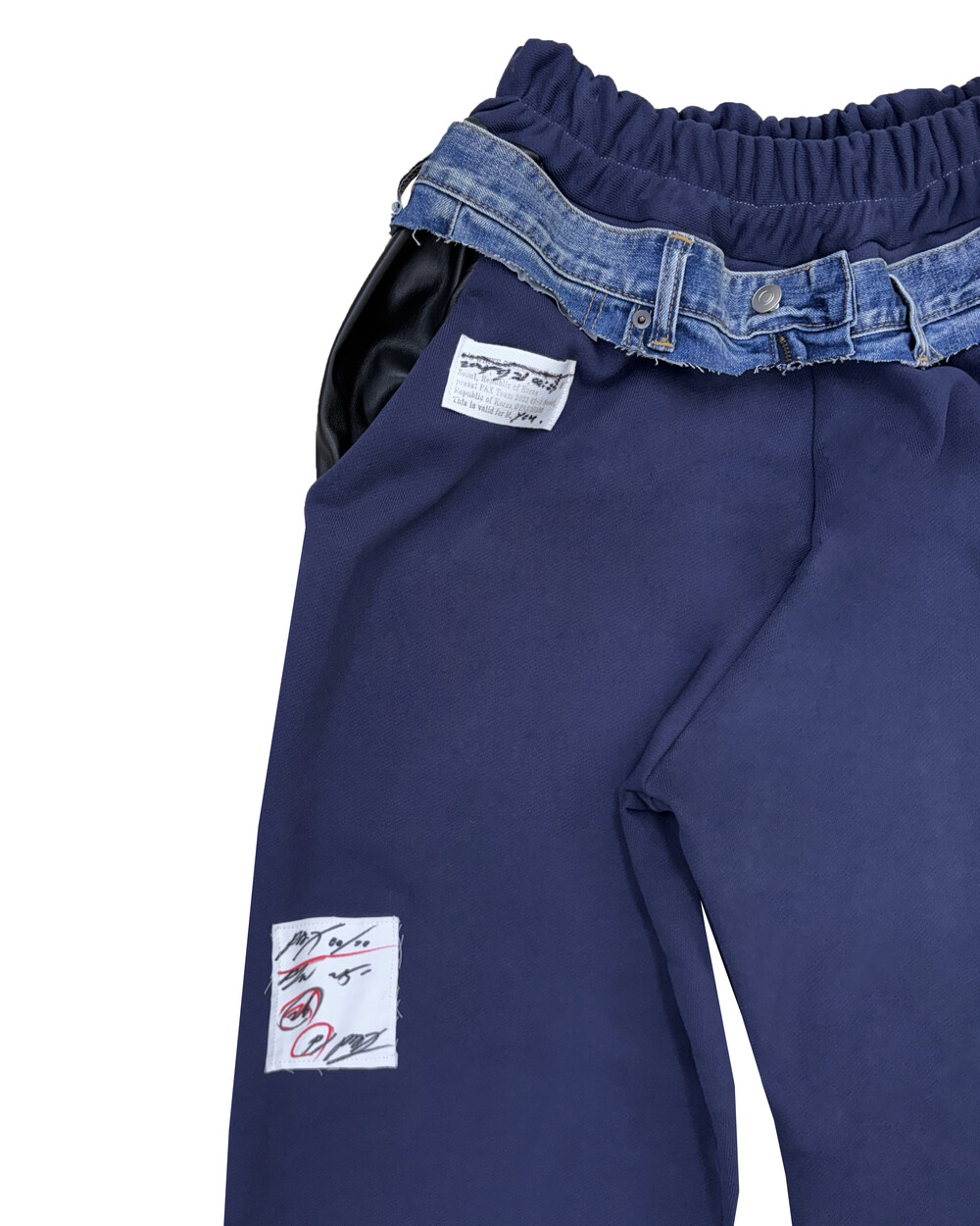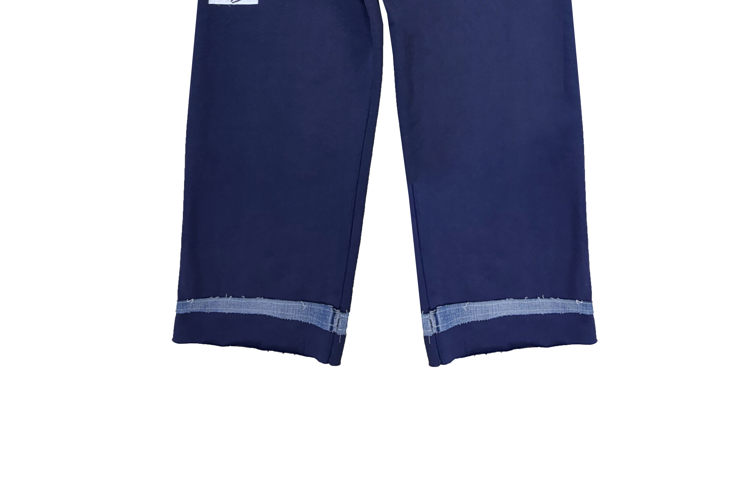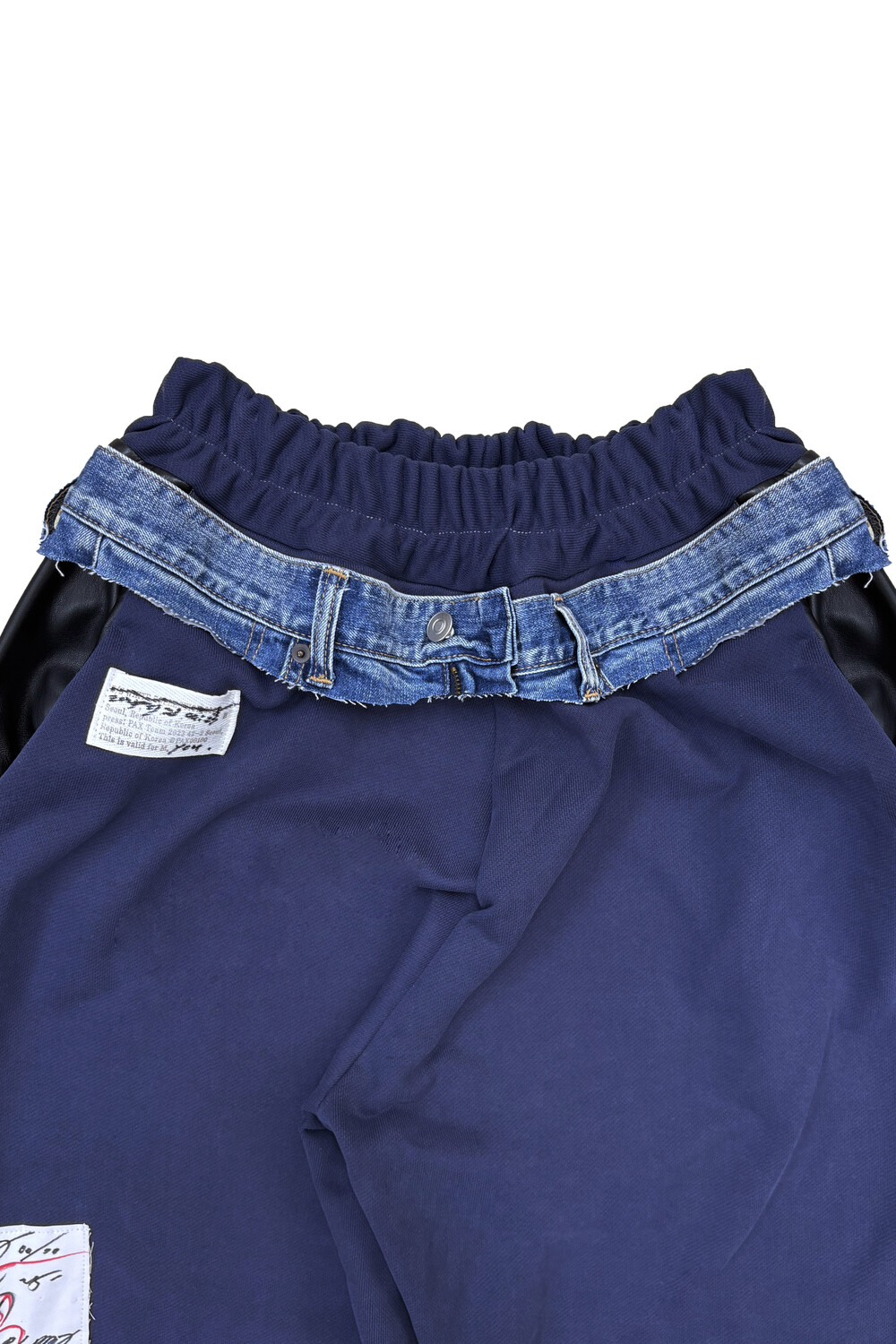 Denim-Belt Layered Navy Straight Pants