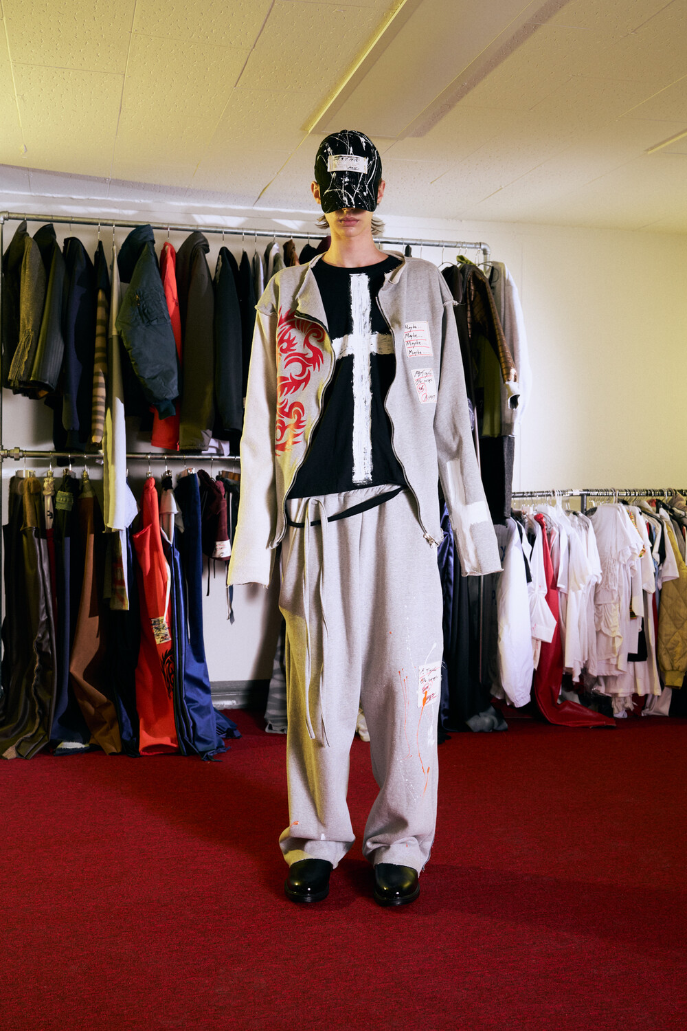 Grey Oversized Painted Pants with Big Pockets & Strings