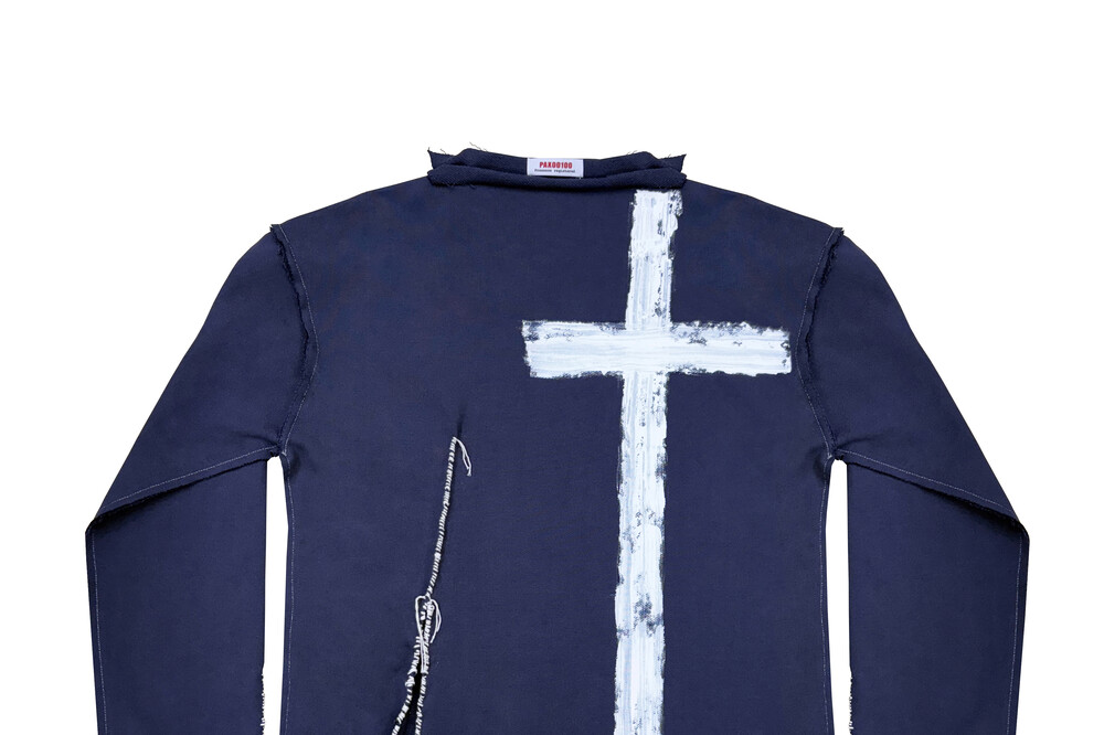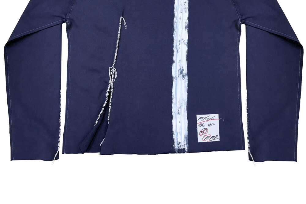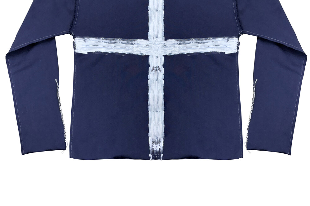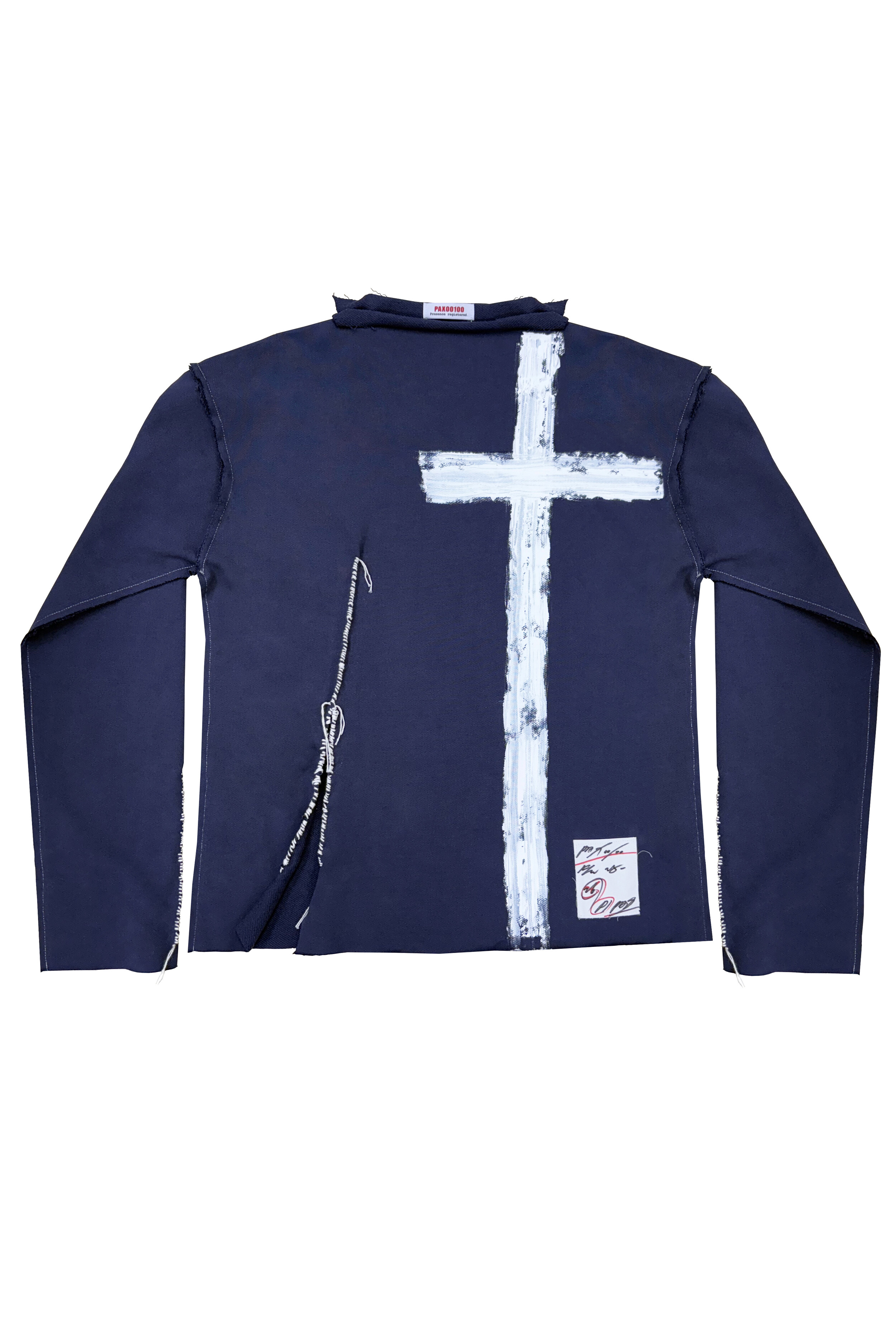 Navy Hand-Sewn Cross-Painting Top