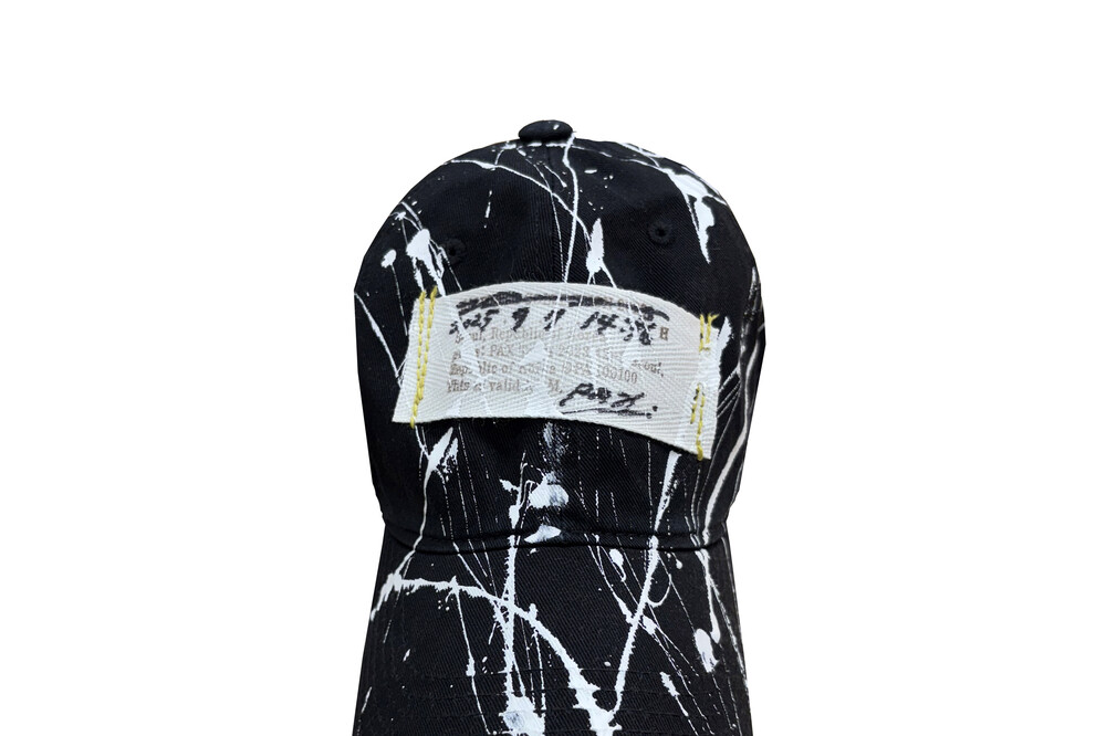 Black Cap with White Painting & Date-Time Label