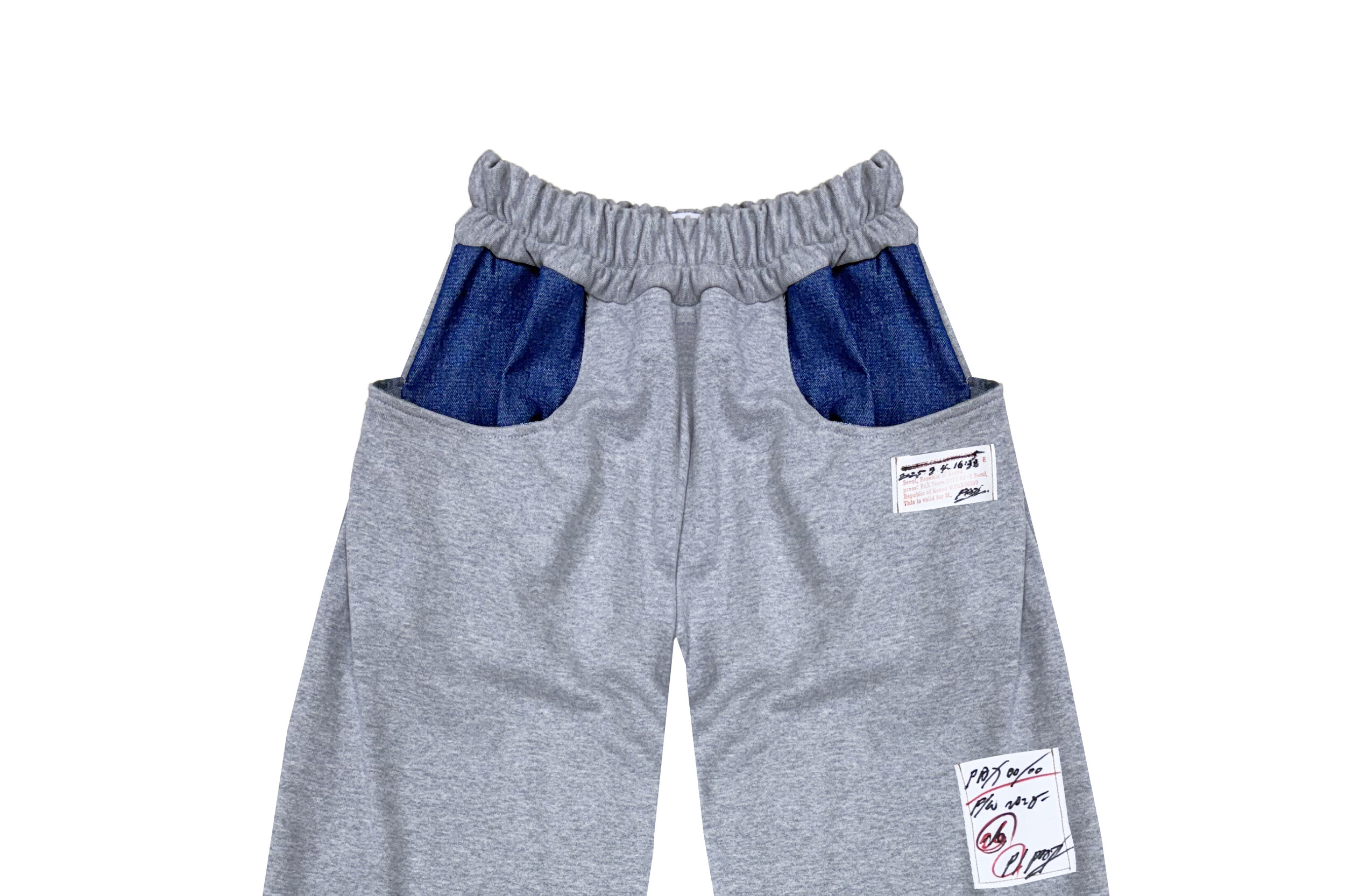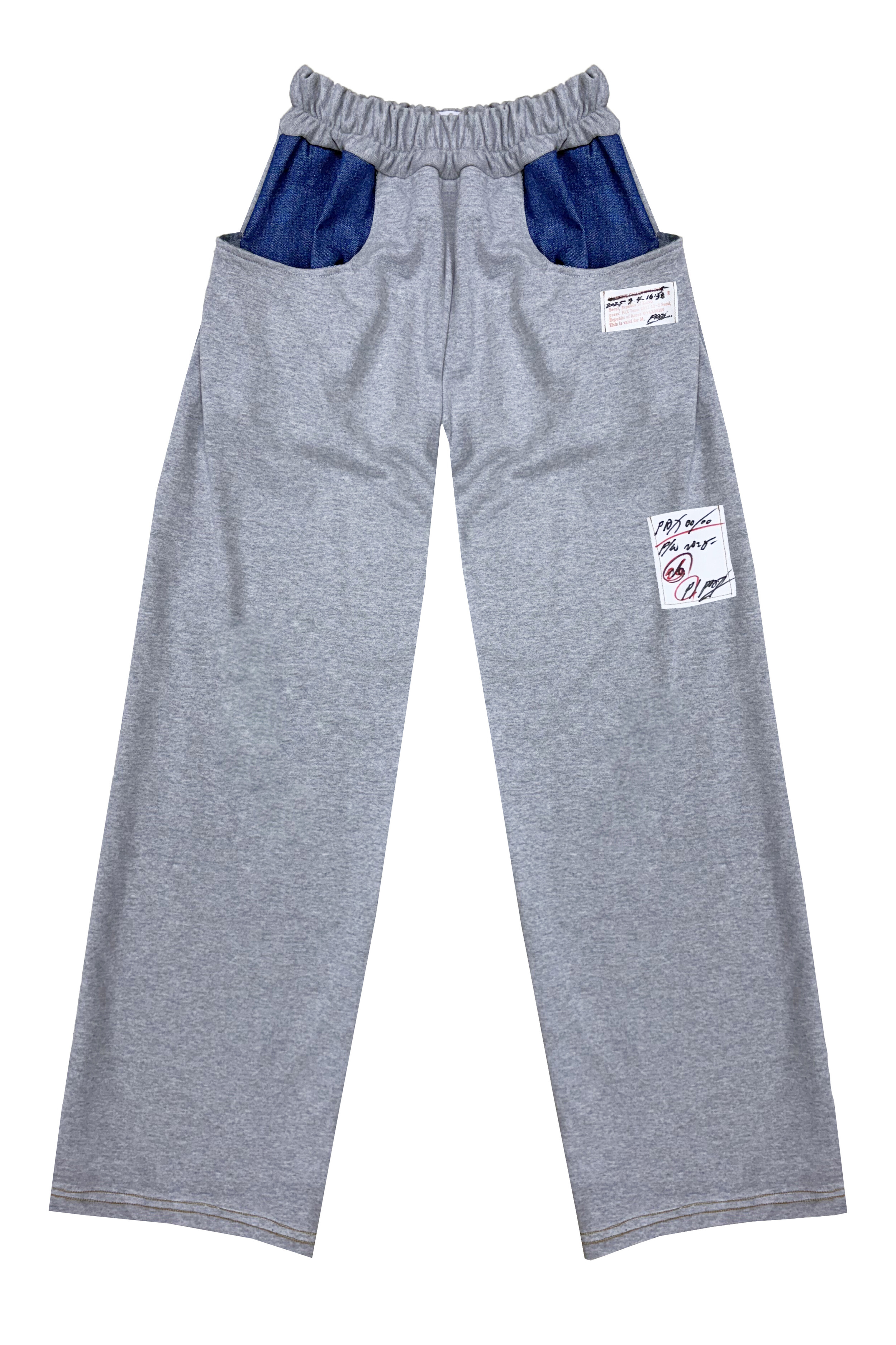 Grey Denim-Pocket Straight Track Pants
