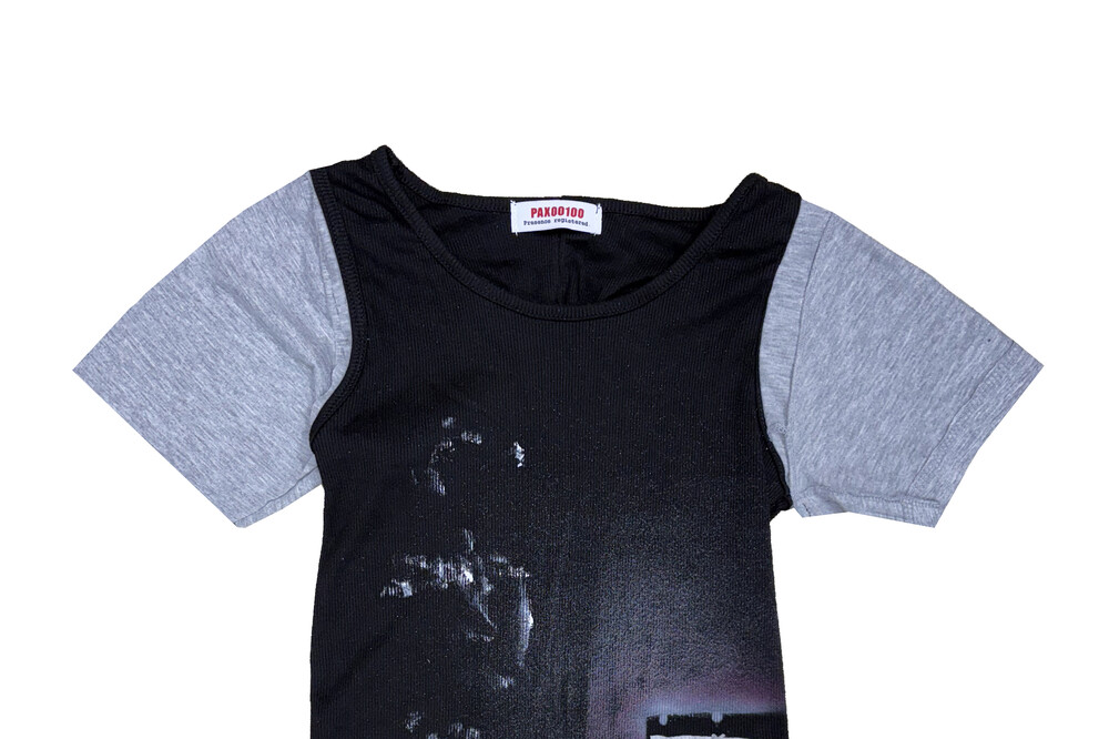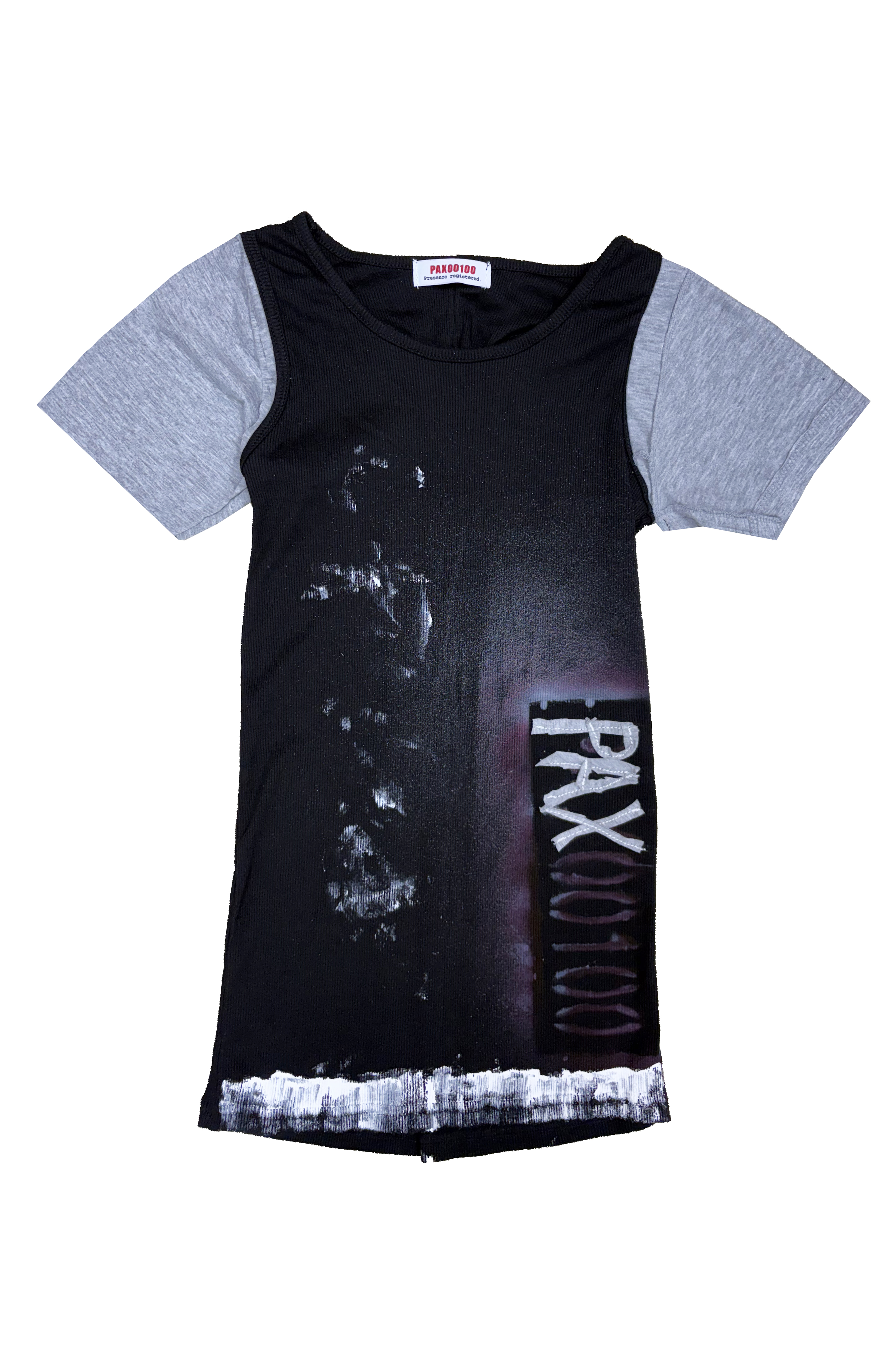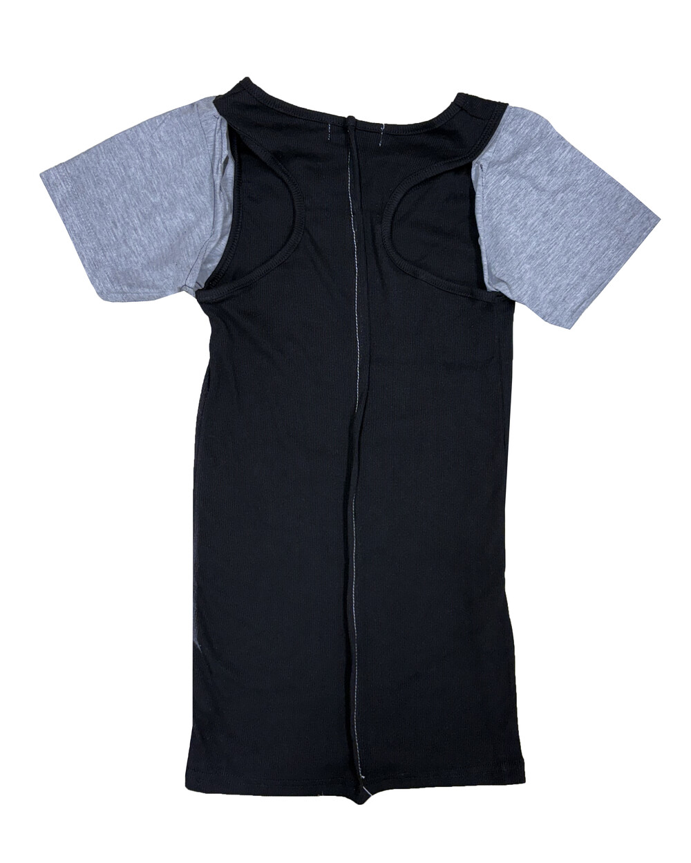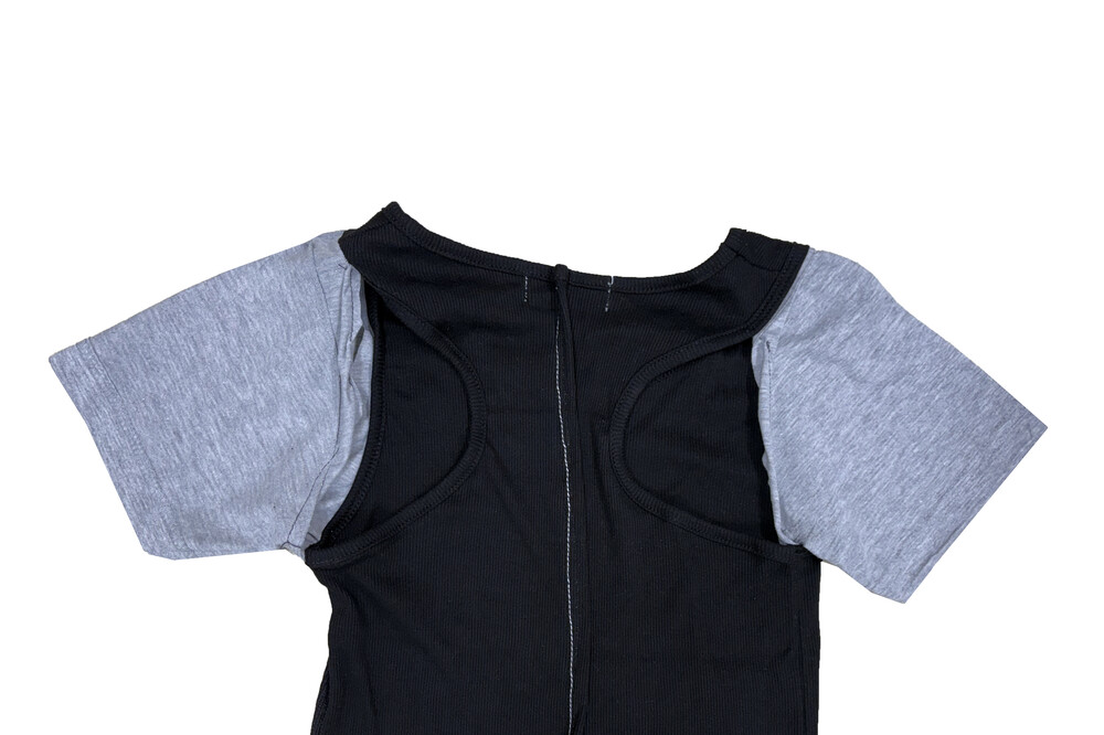 - Combined design with gray cotton sleeves and ribbed tank top